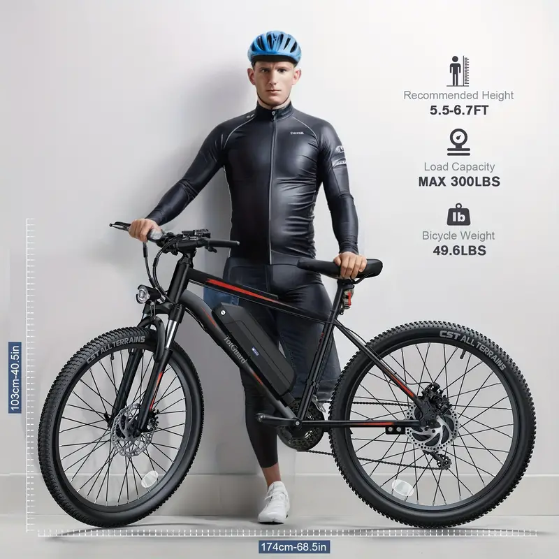 Tipo: Bicicleta eléctrica Rango de edad (Descripción): Adulto Número de velocidades: 21 Tamaño de la rueda: 26 pulgadas Material del marco: Aluminio Tipo de suspensión: Delantera Característica especial: Faro, asiento ajustable Componentes incluidos: Pata de cabra, bicicleta eléctrica, juego de herramientas