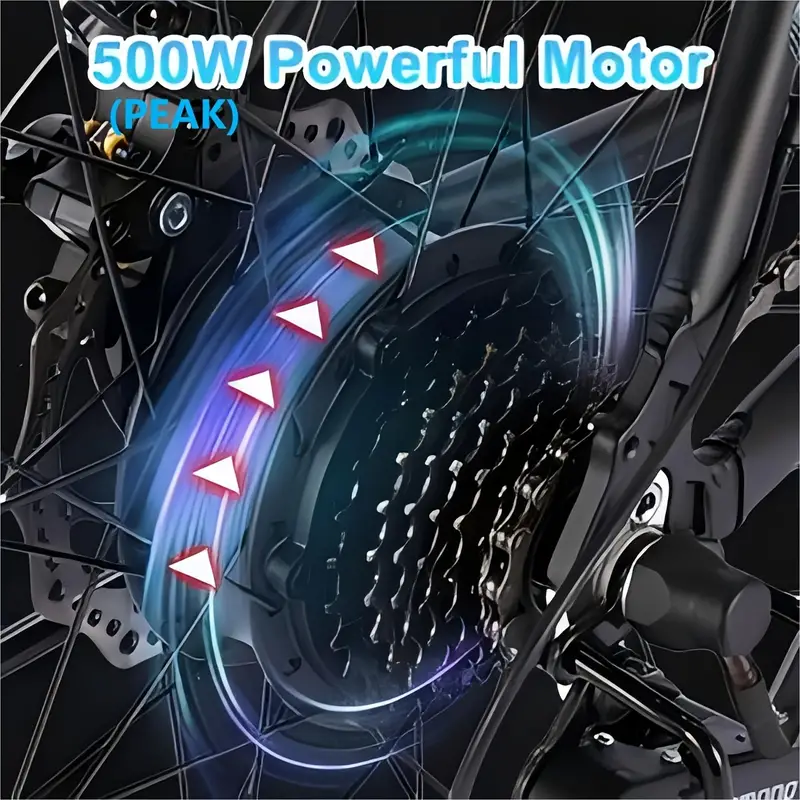 eléctrica de montaña de 26,   adultos con batería extraíble de 36 V y 374 Wh,   eléctrica con   de   de 500 W, 21  es, autonomía de   50  ,     de 20 MPH,   eléctrica    . detalles 6