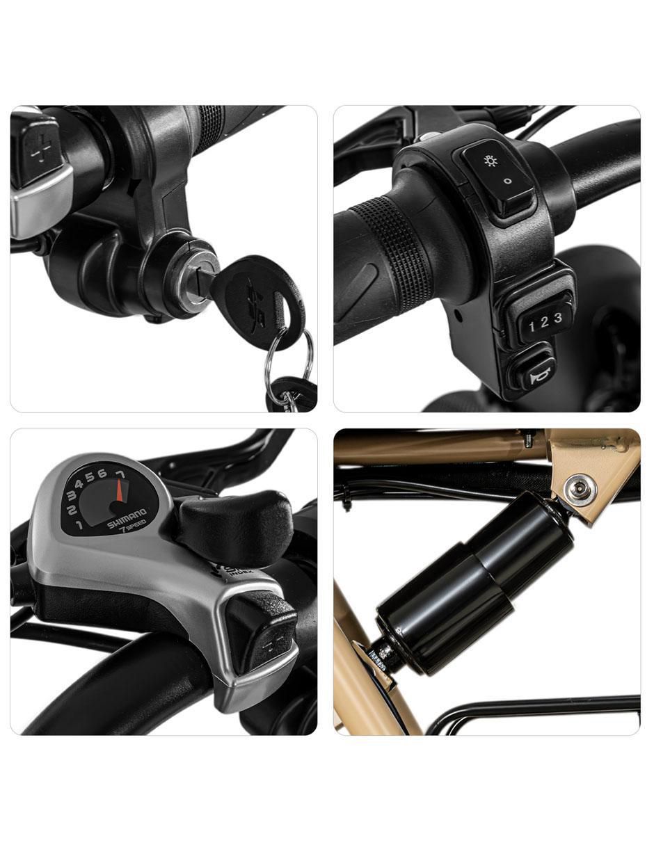 Diseño innovador para jóvenes aventureros. Descubre la combinación perfecta entre estilo y funcionalidad con la bicicleta eléctrica. Su diseño moderno en acabado mate, te permite destacar en cualquier entorno. Compacta y ligera, su estructura de acero doble tubular asegura durabilidad sin comprometer la estética. Velocidad y potencia al alcance de tus manos. La bicicleta eléctrica cuenta con un motor etf48v400w sin escobillas, capaz de alcanzar hasta 41 km/h en tres velocidades eléctricas. Su sistema de cambios shimano tourney y piñones traseros de 7 velocidades garantizan una experiencia fluida, ideal para sortear cualquier terreno urbano o montañoso. Confort y seguridad en cada trayecto. Pensada para ti, incluye un asiento ergonómico de cuero sintético, ajustable hasta 85 cm de altura, y frenos de disco filel para un control absoluto. Sus ruedas rodada 20 y neumáticos anchos de nylon con 36 rayos de acero ofrecen máxima estabilidad. Además, la batería de litio asegura hasta 30 km de autonomía combinada. Tecnología que facilita tu vida. Equipada con pantalla led, claxon, luz frontal y un sistema de alarma remoto, esta bicicleta se adapta a cualquier momento. Pedalea asistido, usa solo el motor o mezcla ambos modos. La batería desmontable incluye una llave de seguridad y un cargador eficiente para cargas rápidas y confiables. Un mundo de posibilidades en tus rutas. Perfecta para jóvenes de espíritu aventurero y altura mínima de 160 cm. Incluye herramientas esenciales y una canastilla espaciosa para acompañarte en cada trayecto. Montar ladiseño innovador para jóvenes aventureros. Descubre la combinación perfecta entre estilo y funcionalidad con la bicicleta eléctrica mkz bielscram. Su diseño moderno, con colores beige y negro en acabado mate, te permite destacar en cualquier entorno. Compacta y ligera, su estructura de acero doble tubular asegura durabilidad sin comprometer la estética. Velocidad y potencia al alcance de tus manos. La mkz bielscram cuenta con un motor etf48v400w sin escobillas, capaz de alcanzar hasta 41 km/h en tres velocidades eléctricas. Su sistema de cambios shimano tourney y piñones traseros de 7 velocidades garantizan una experiencia fluida, ideal para sortear cualquier terreno urbano o montañoso. Confort y seguridad en cada trayecto. Pensada para ti, incluye un asiento ergonómico de cuero sintético, ajustable hasta 85 cm de altura, y frenos de disco filel para un control absoluto. Sus ruedas rodadas 20 y neumáticos anchos de nylon con 36 rayos de acero ofrecen máxima estabilidad. Además, la batería de litio asegura hasta 30 km de autonomía combinada. Tecnología que facilita tu vida. Equipada con pantalla led, claxon, luz frontal y un sistema de alarma remoto, esta bicicleta se adapta a cualquier momento. Pedalea asistido, usa solo el motor o mezcla ambos modos. La batería desmontable incluye una llave de seguridad y un cargador eficiente para cargas rápidas y confiables. Un mundo de posibilidades en tus rutas. Perfecta para jóvenes de espíritu aventurero y altura mínima de 160 cm. Incluye herramientas esenciales y una canastilla espaciosa para acompañarte en cada trayecto. Montar la bicicleta no es solo transporte; es vivir cada kilómetro con estilo y practicidad. No es solo transporte; es vivir cada kilómetro con estilo y practicidad