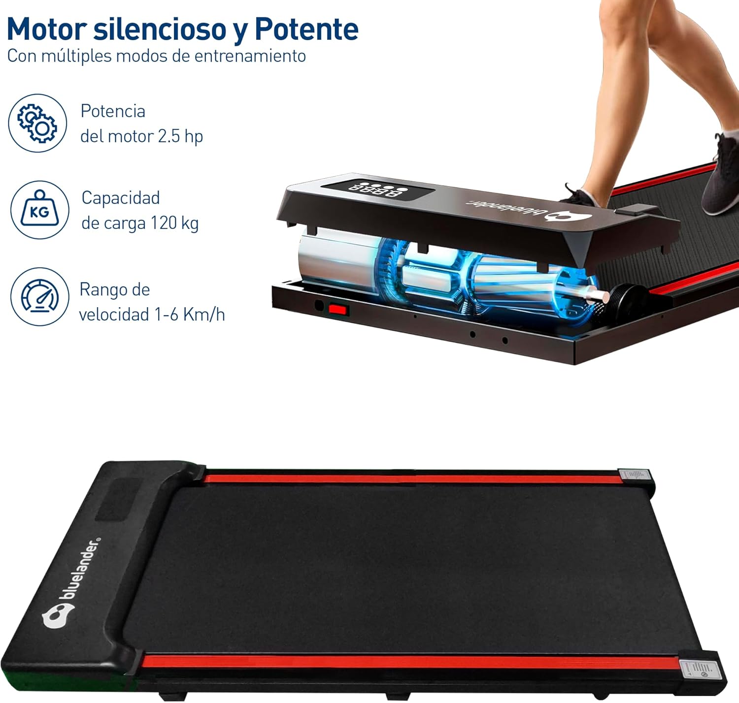 • [CAMINADORA PORTÁTIL] Presentamos nuestra caminadora compacta, con dimensiones de 115*49*8 cm, esta caminadora ofrece un amplio espacio para correr de manera cómoda y segura, con un soporte máximo de peso de 120 Kg y una altura recomendada de hasta 1.85 metros, no hay excusas para no mantenerse activo y en forma, aprovecha al máximo tus entrenamientos