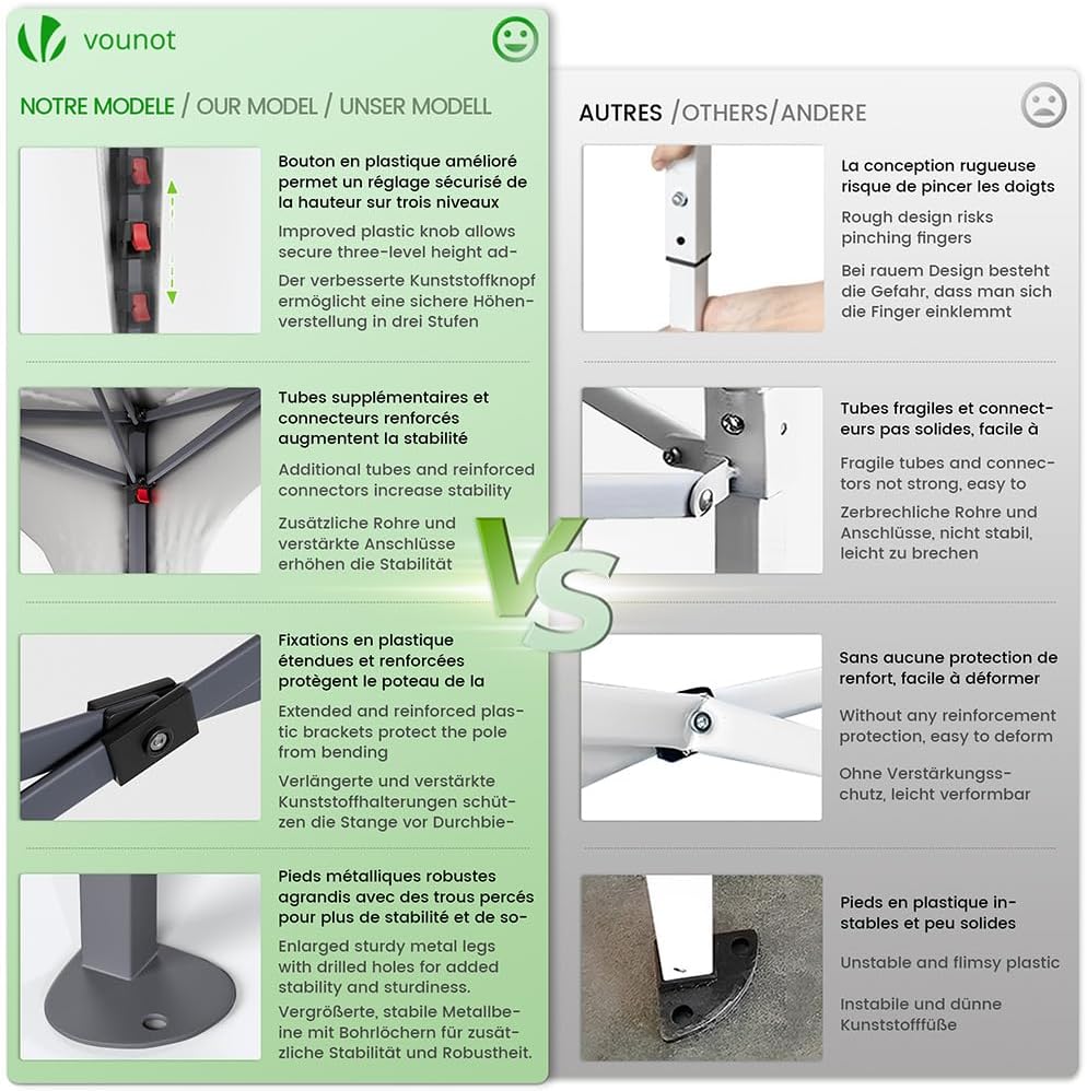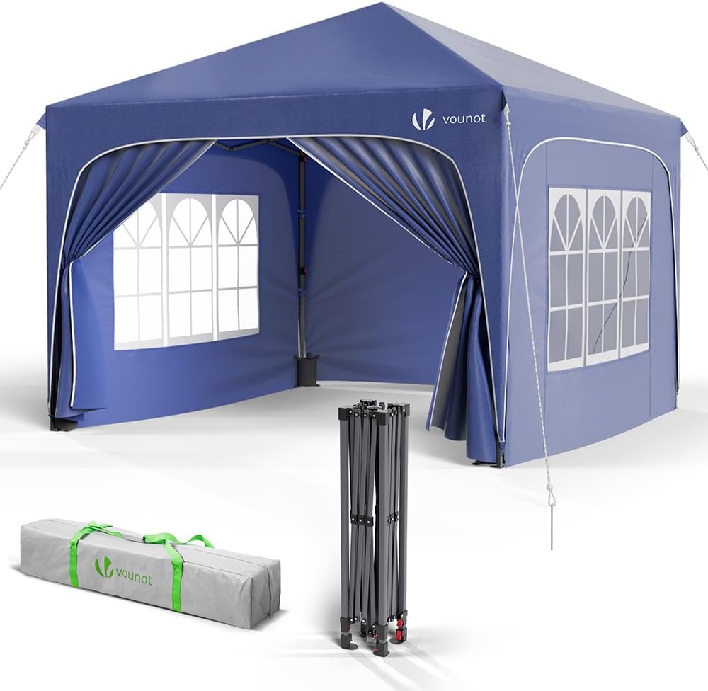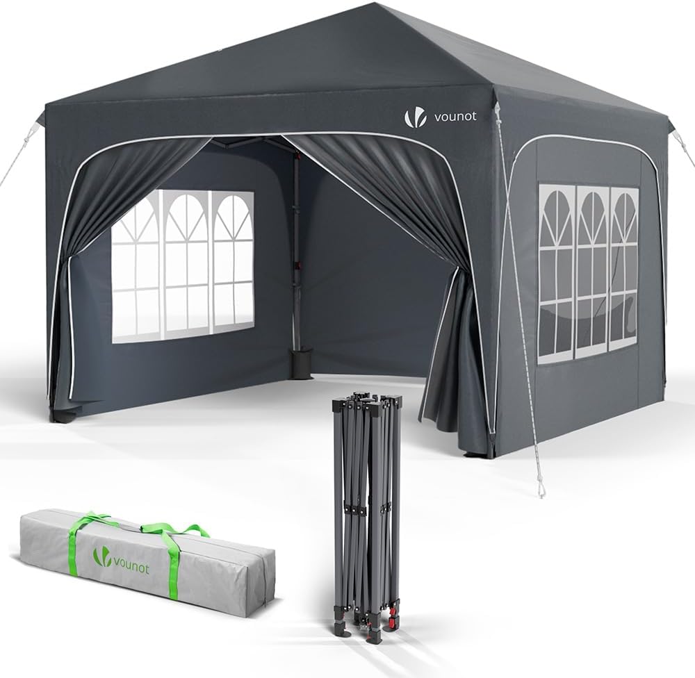 - MULTIUSO Y PRÁCTICO: Equipada con botones mejorados para evitar pellizcos en los dedos y ganchos fuertes para asegurar las esquinas firmemente, la glorieta es práctica y segura, proporcionando refugio temporal para diversas actividades en jardines, patios, terrazas, playas, parques y mercados. También viene con una bolsa de transporte que facilita su almacenamiento y traslado.
