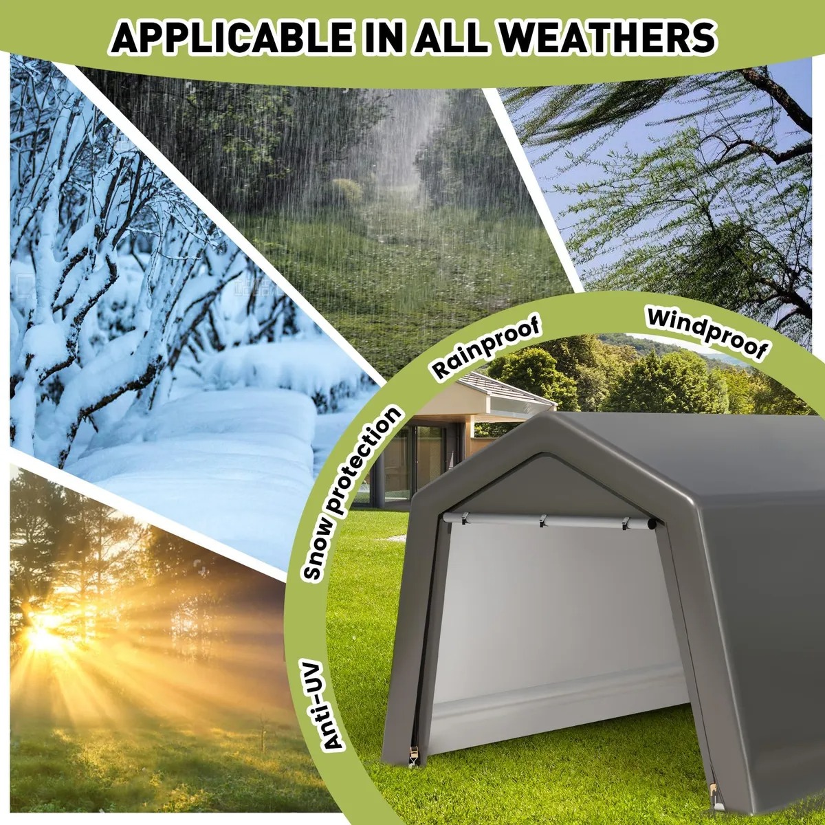 Puertas enrollables con cremallera: Nuestro cobertizo de almacenamiento al aire libre está fabricado por expertos en material de polietileno de alta calidad, proporcionando una excelente protección contra la lluvia y los dañinos rayos UV. Este diseño excepcional garantiza que tus pertenencias permanezcan seguras y secas, independientemente de las condiciones climáticas. Puedes confiar en que tus artículos estarán bien protegidos de los elementos, lo que permite un almacenamiento sin preocupaciones durante todas las estaciones.