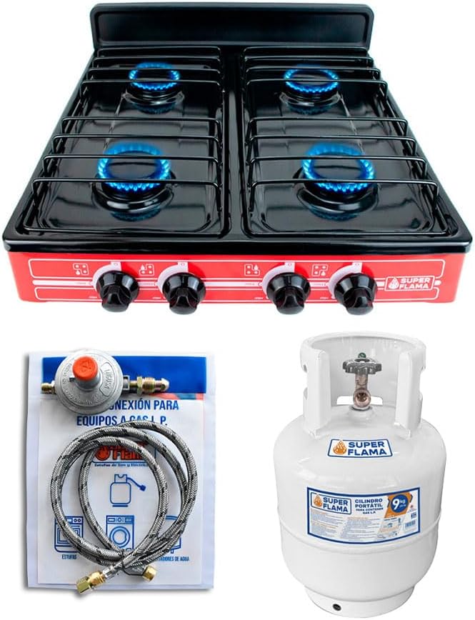 Este combo está diseñado para ofrecer una solución completa, eficiente y segura para cocinar con gas L.P. Incluye una parrilla de acero esmaltado, un tanque de gas de 9 kg con válvula de seguridad, y los accesorios necesarios para una instalación inmediata. La parrilla está construida con materiales resistentes como lámina de acero rolado frío en calibres 24 y 26, con acabados en esmalte porcelanizado y pintura electrostática. Incorpora tapas y bases de quemadores en acero esmaltado y galvanizado, además de parrillas superiores de alambre de acero Cal. 7 con recubrimiento resistente al calor. Cuenta con válvula en Zamak, perillas de plástico rígido y un sistema de encendido manual. Para mayor seguridad, integra una válvula de seguridad de 2 pasos con dispositivo contra apertura accidental. Funciona exclusivamente con gas L.P. y tiene una presión de trabajo de 2.75 kPa. El tanque de gas incluido tiene una capacidad de 9 kg (20 lb), fabricado en materiales durables y equipado con válvula de seguridad contra sobrepresión. Tiene una rosca de válvula de 3/4” - 14 NGT y una presión de servicio de 18 BAR. Está diseñado para ser utilizado únicamente en posición vertical y en lugares bien ventilados, evitando su uso en espacios cerrados o cerca de fuentes de calor. El combo se completa con accesorios de instalación que permiten una conexión segura entre la parrilla y el tanque, facilitando un uso inmediato tras la instalación correcta.