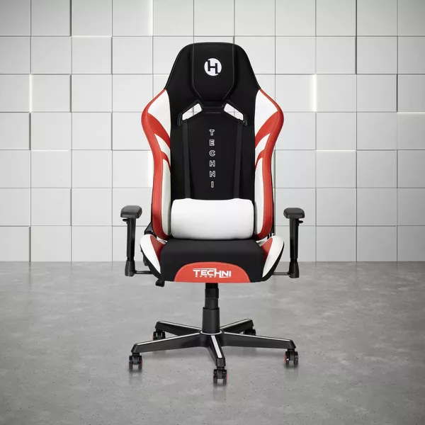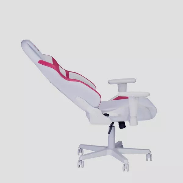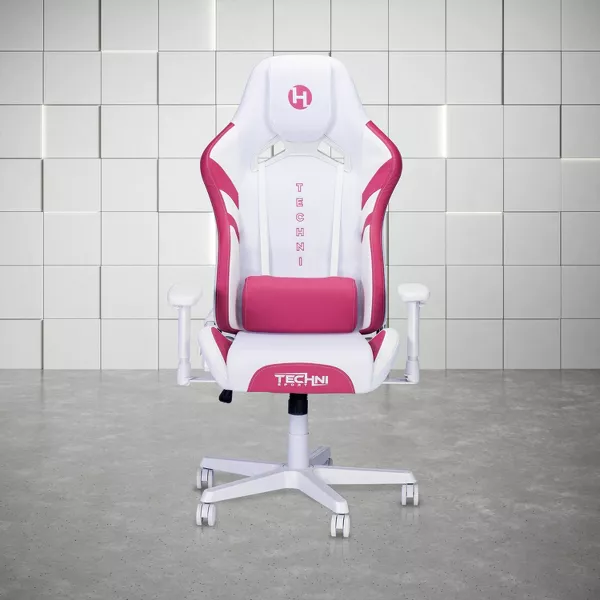 Dive into unparalleled comfort with the TSF72 Echo Gaming Chair. Available in striking white with pink or bold black with red and white accents, this chair seamlessly merges style with function. Tailored for immersive gaming, its stain-resistant fabric upholstery and streamlined design guarantee style and durability. Enjoy a seamless experience with its pneumatic height adjustment, tilt tension control, and molded foam seat. Additionally, it boasts a built-in headrest, adjustable lumbar pillow, and padded armrests for tailored comfort. Supported by a robust steel frame and a sturdy nylon base with non-marking casters, it safely accommodates up to 250 lbs and comes with a 2-year warranty. Dimension: 27.5'' W x 25.5'' D x 48.25 - 51'' H