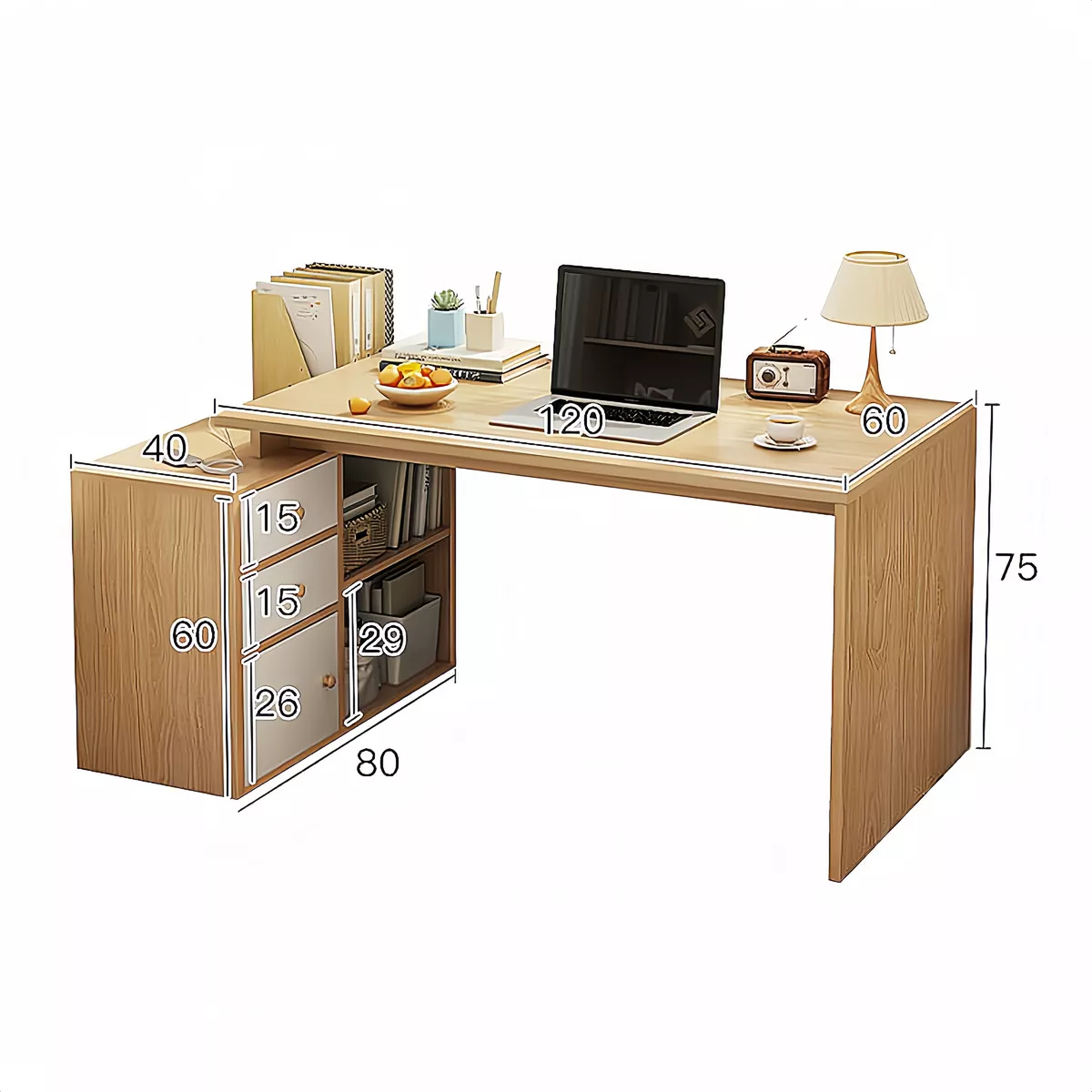 - CAJÓN DE ALMACENAMIENTO: En el otro lado, hay un práctico cajón que proporciona almacenamiento privado para documentos, material de oficina u otros objetos personales. El cajón está equipado con deslizadores suaves y es fácil de abrir y cerrar, lo que facilita la organización y el almacenamiento.