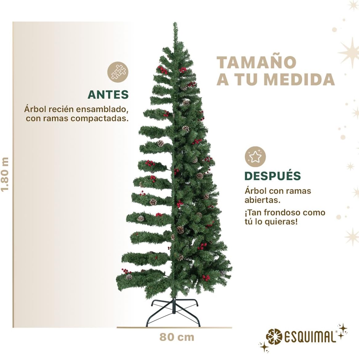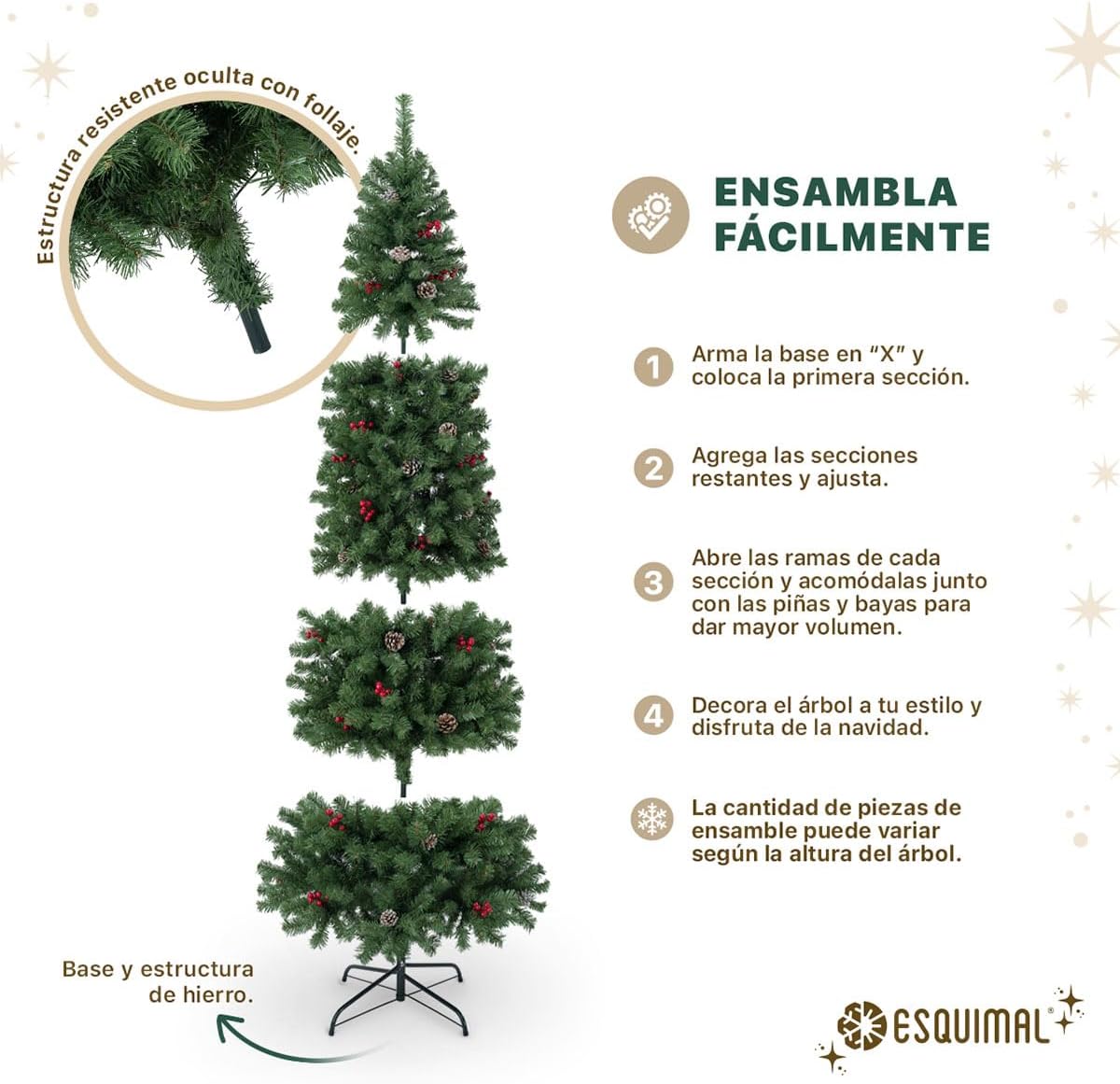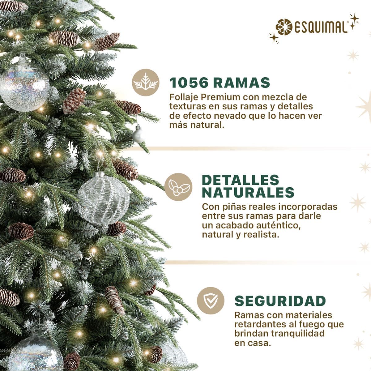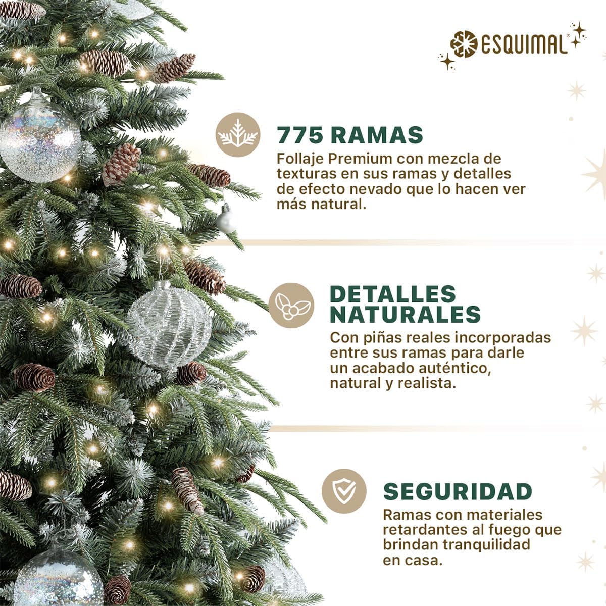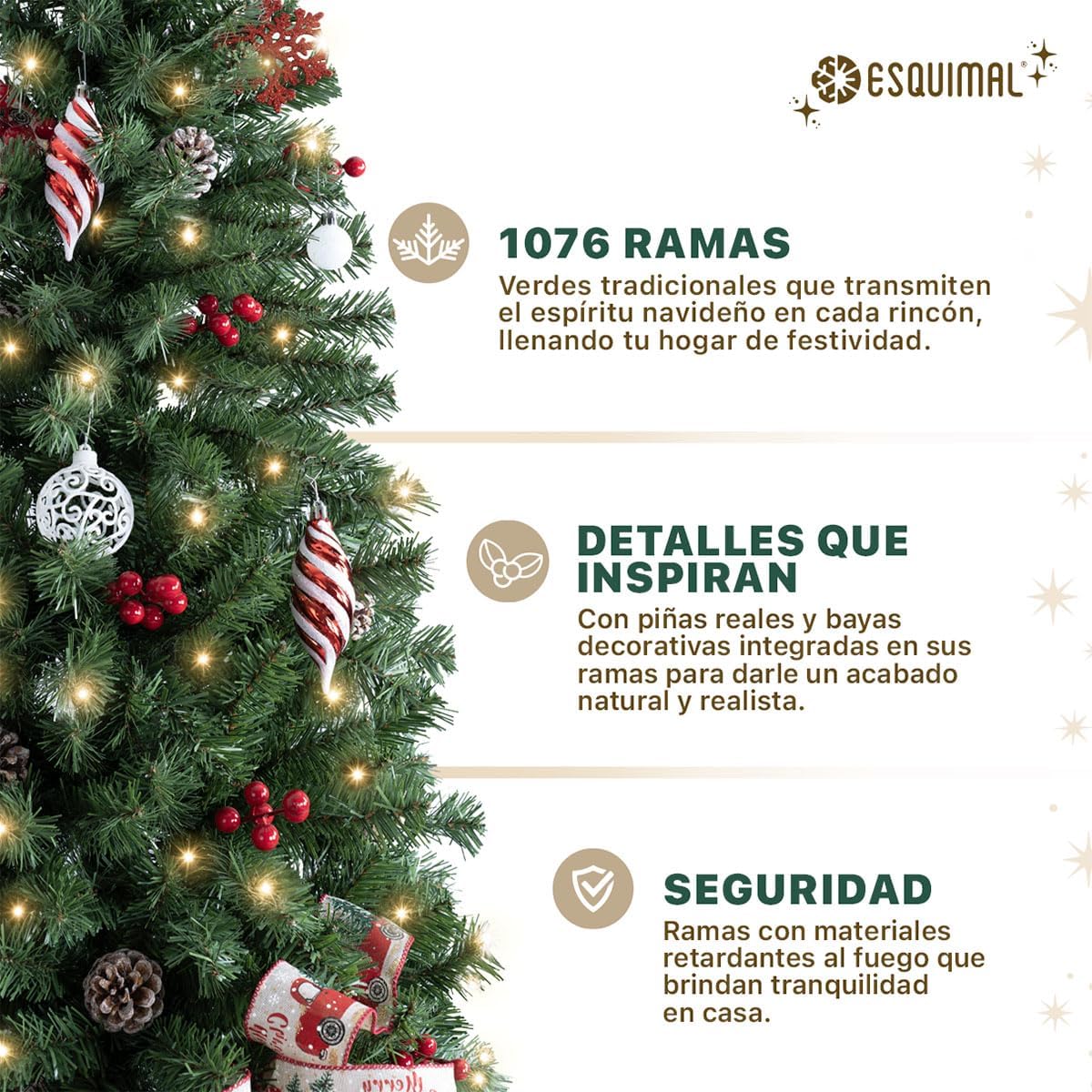- DECORACIÓN INNOVADORA ESQUIMAL: Con más de 20 años de trayectoria y miles de familias satisfechas, Esquimal es referente de confianza para muchos hogares. Esta temporada invernal, nuestra colección de árboles y decoración navideña continúa acompañándote en la transformación de tus espacios con acabados mejorados y diseños únicos.
