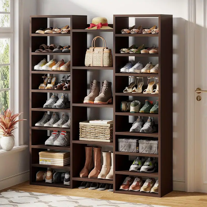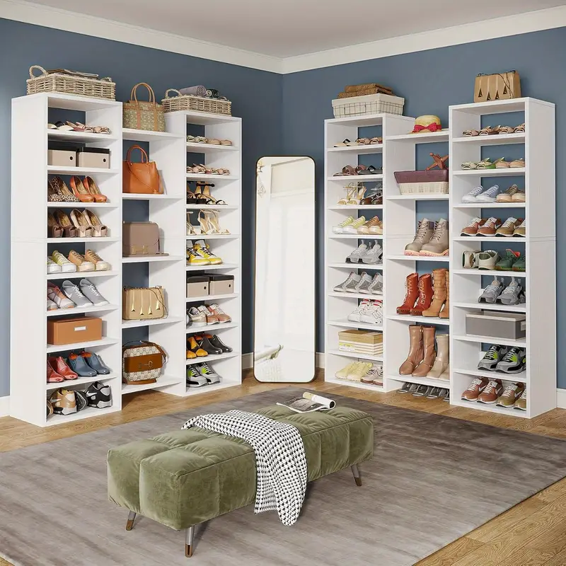Estante para zapatos de 14 niveles, estante alto independiente para zapatos, gabinete de almacenamiento de zapatos de madera blanca con 22 cubículos abiertos, organizador de zapatos de entrada ancha de 46 pares para la entrada, sala de estar detalles 1