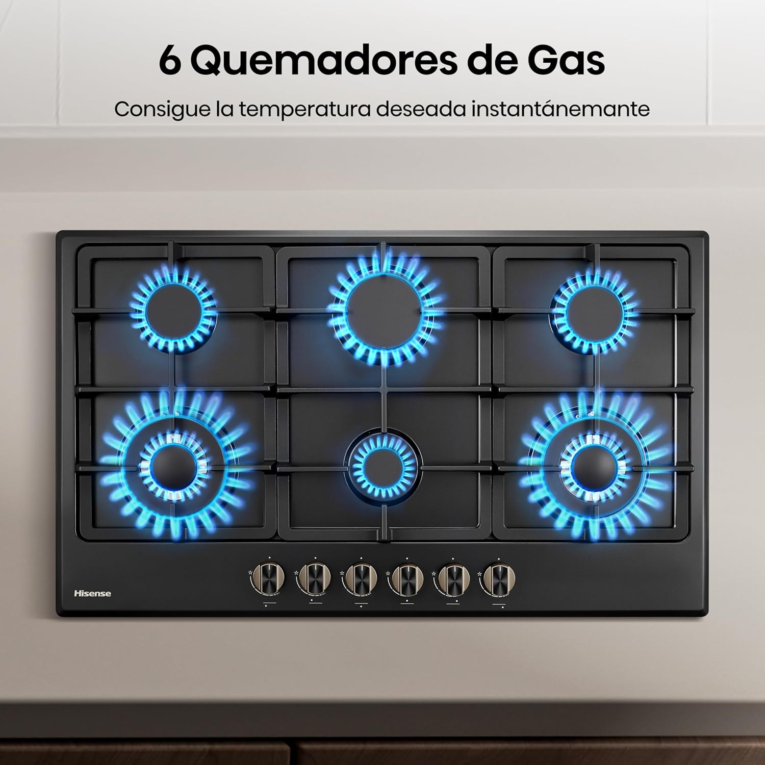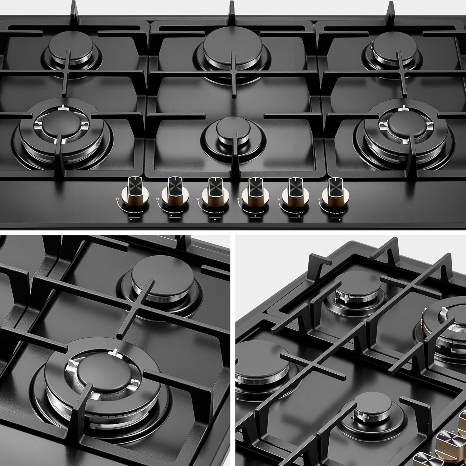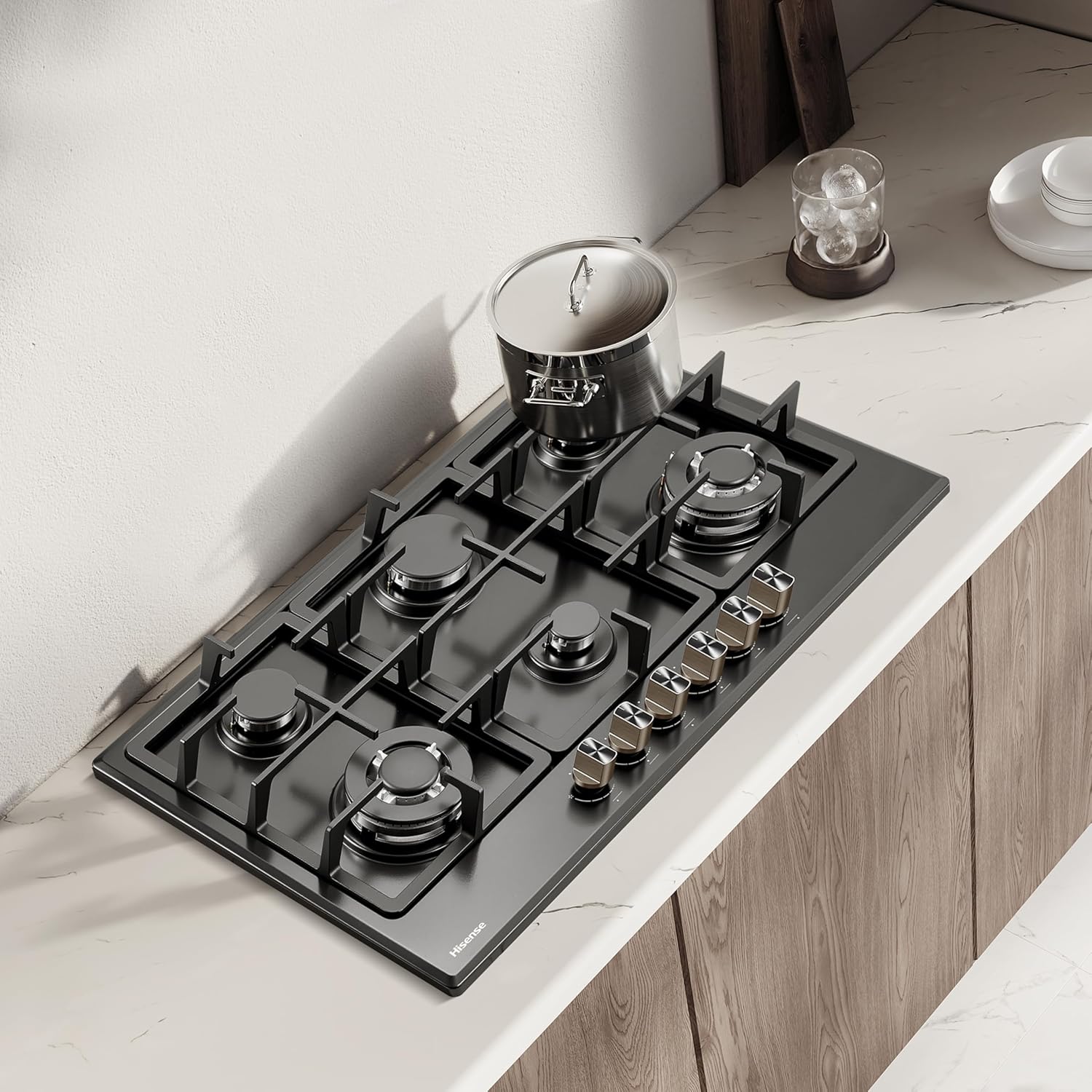- 86cm Built-In Gas Hob (Black Stainless Steel)