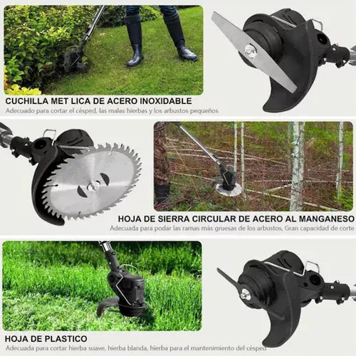 🔹 Versatilidad total – Cambia fácilmente entre podadora, cortadora de césped y desbrozadora.