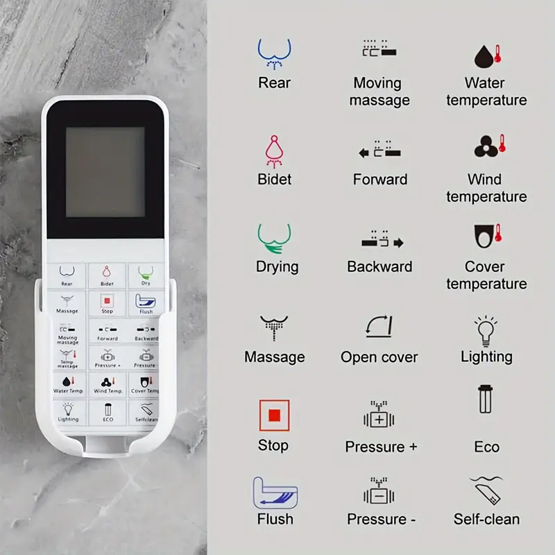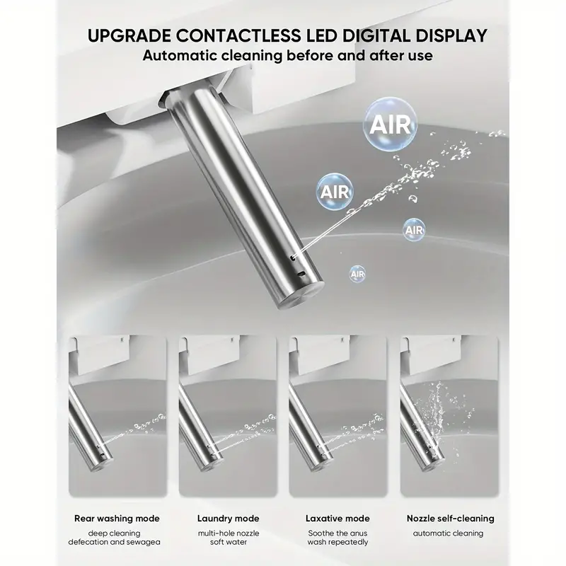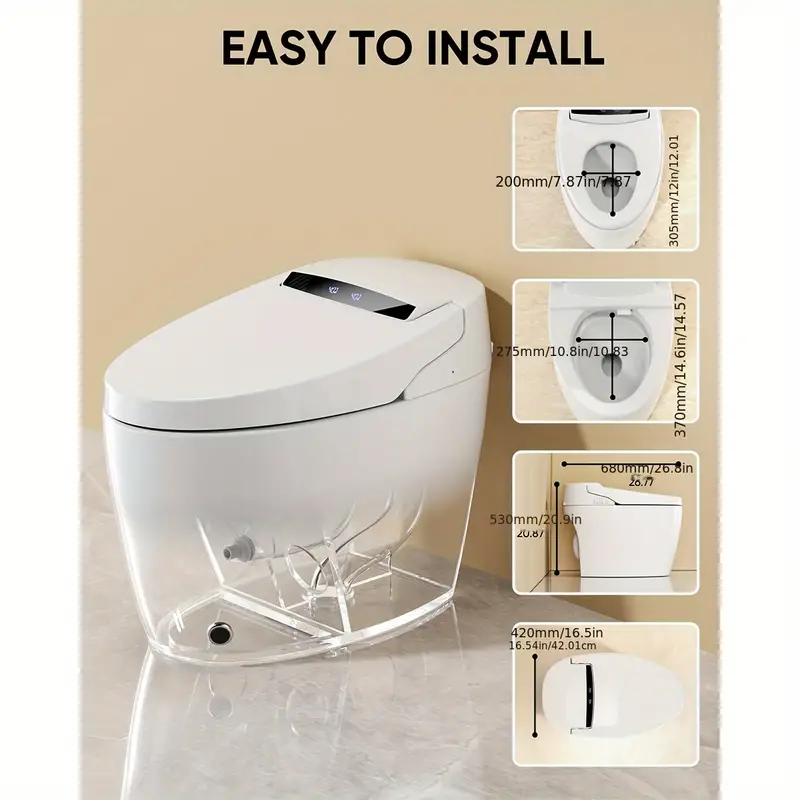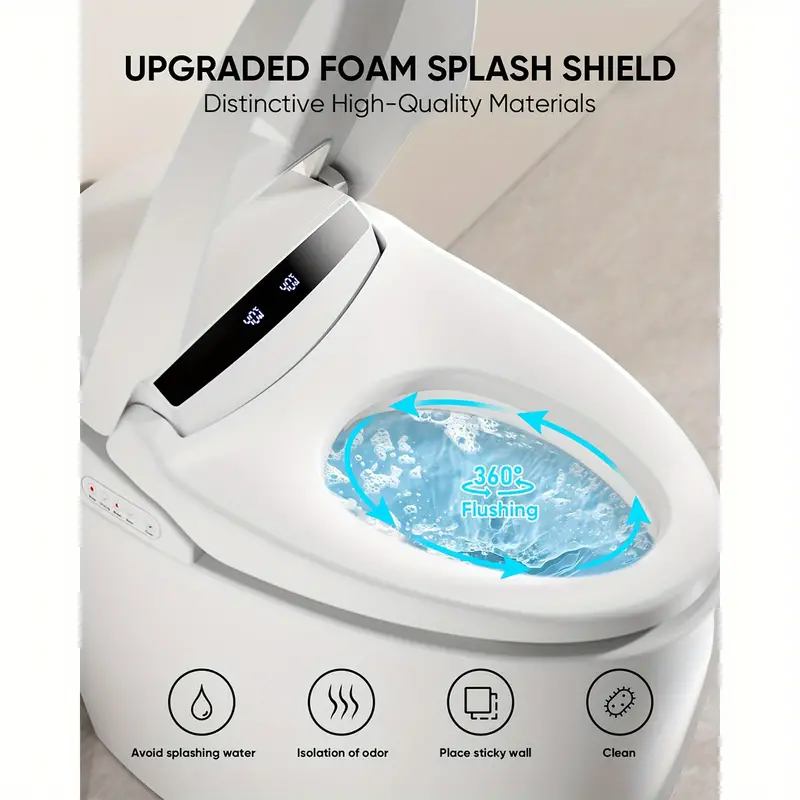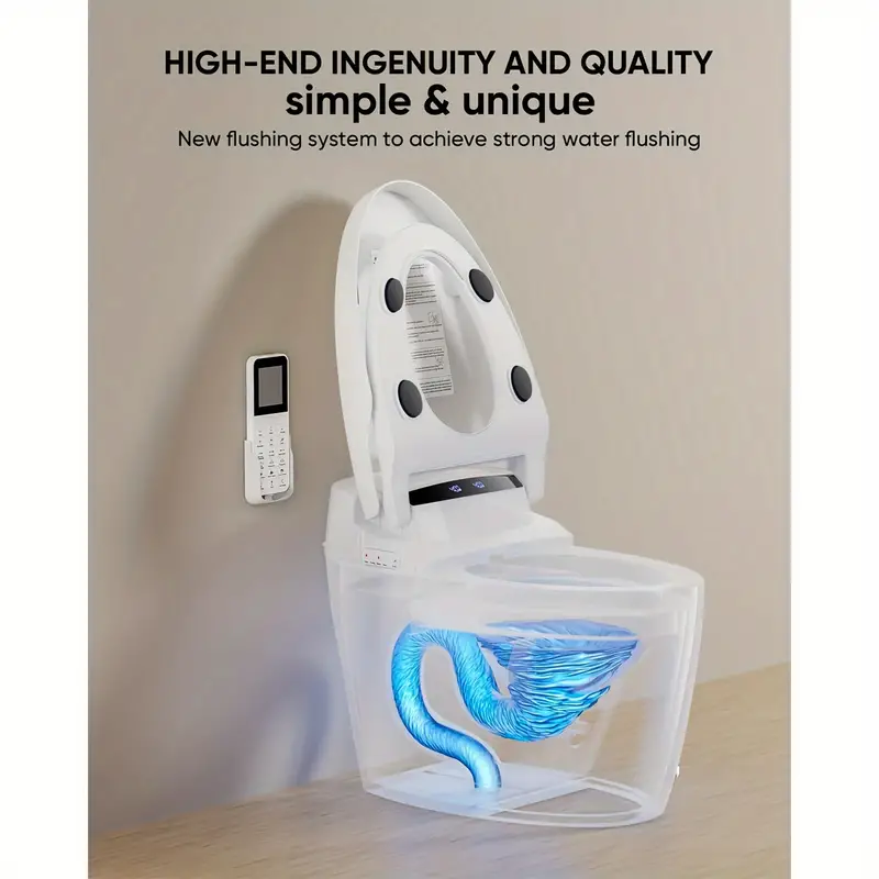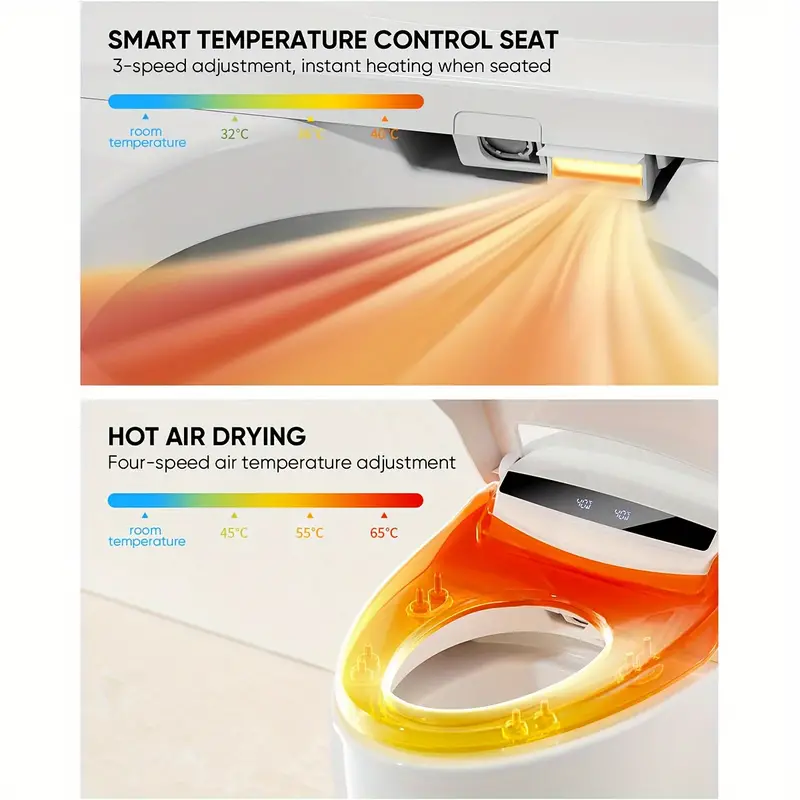 Inodoro Bidé Calefactado de Lujo - Operación Avanzada con Sensor de Pie, Rociador de Agua Cálida y Secador, Pantalla LED, Diseño Elevado sin Tanque para Higiene Cómoda - Modernización de Baño