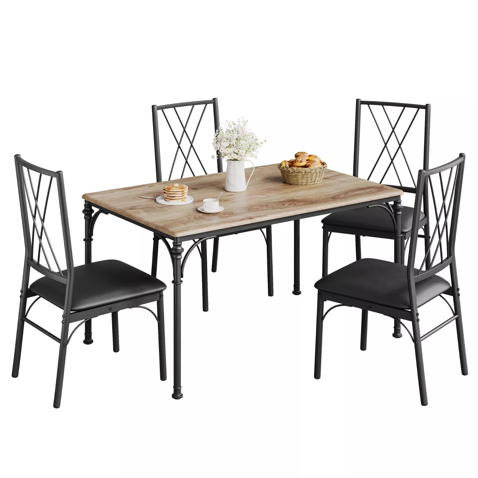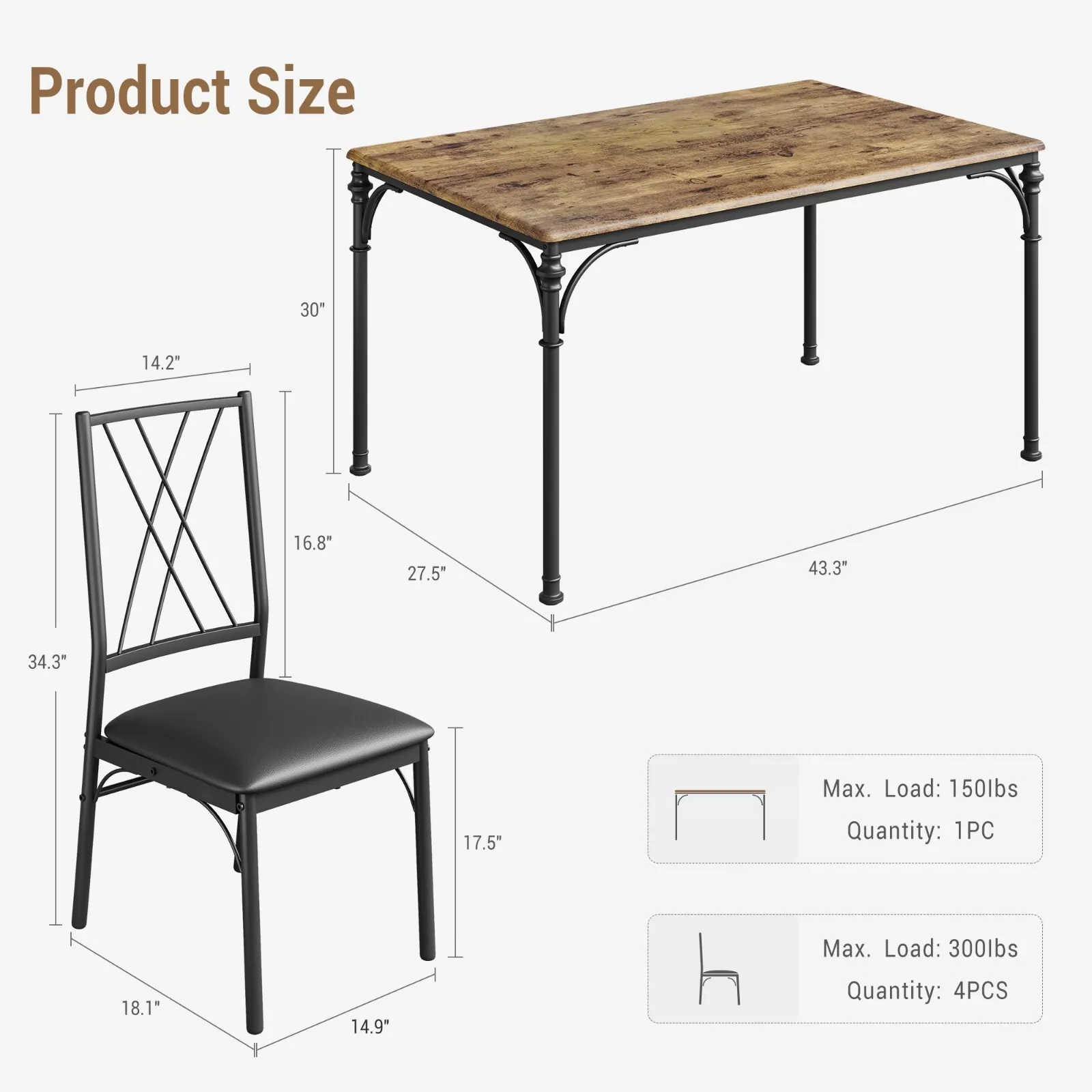 - 👍【Fácil de montar y limpiar】Todos los accesorios y herramientas de montaje vienen con este juego de mesa de cocina. Con instrucciones ilustradas, este juego de mesa de comedor rústico se puede montar en 25 minutos sin esfuerzo.