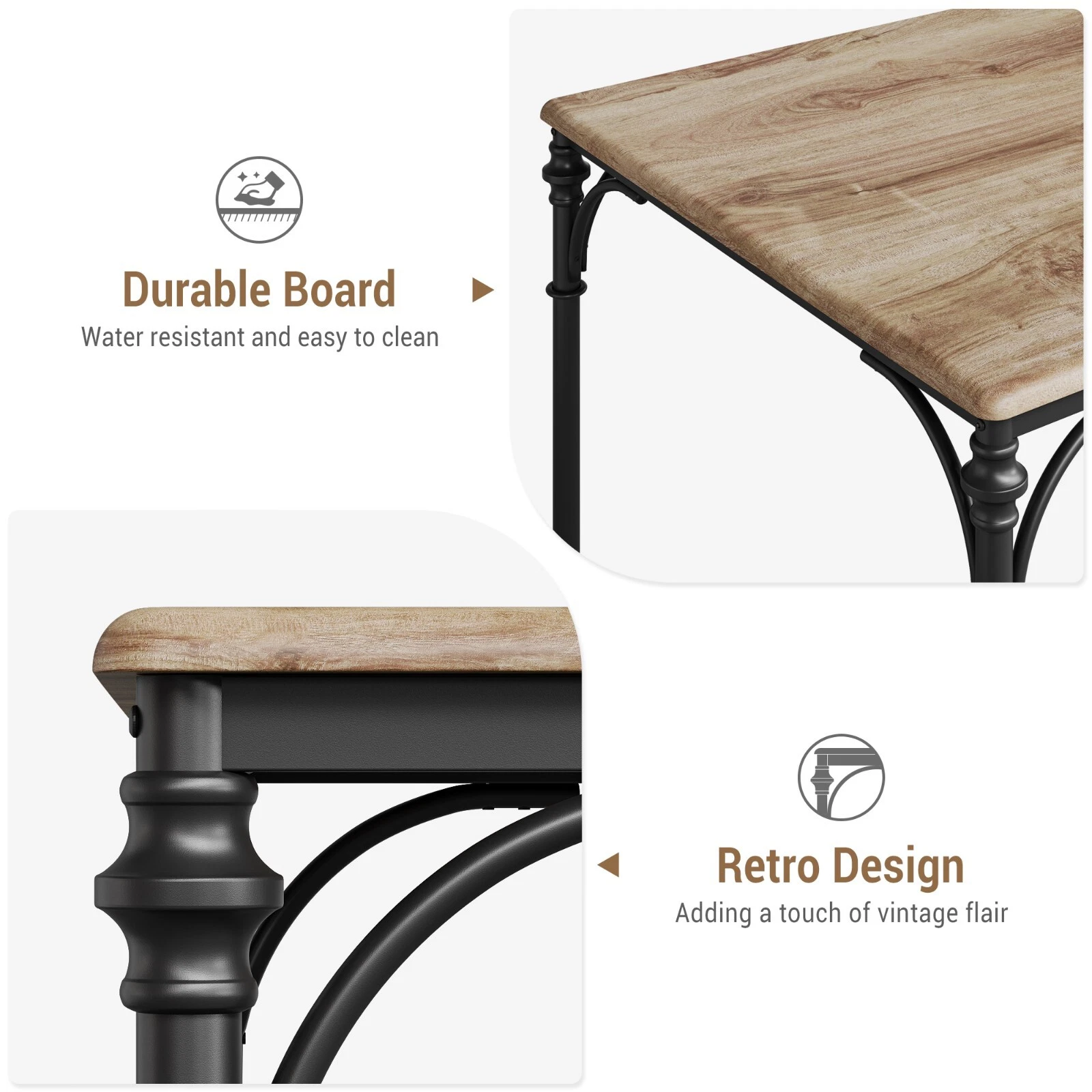 - 👍【Construcción robusta y de alta calidad】Este pequeño juego de mesa de comedor con estructura de metal, que ofrece una vida útil más larga y una estabilidad excelente. Con la parte superior de tablero MDF de primera calidad, la durabilidad general aumentaría significativamente.