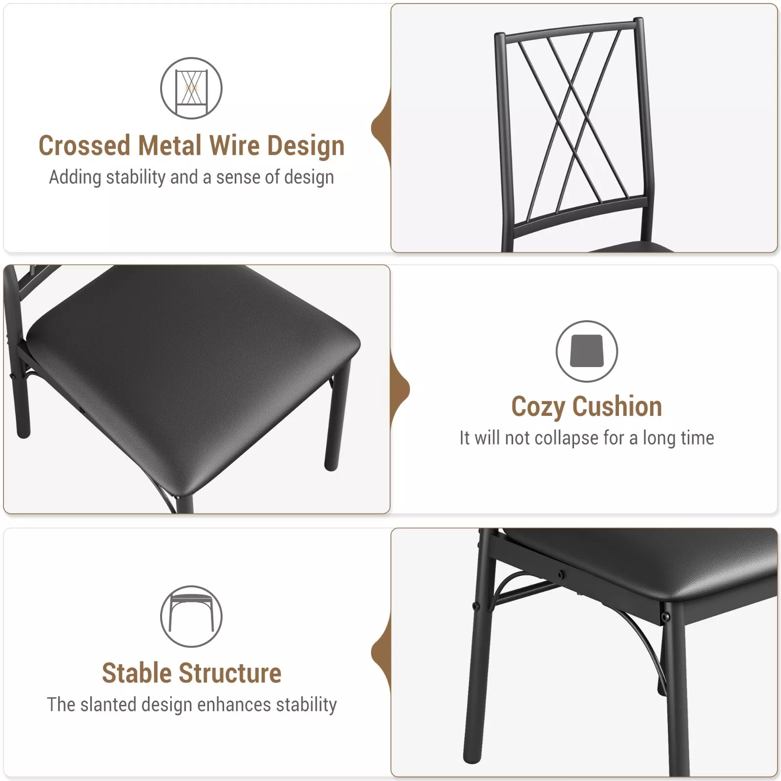 - 👍【Sillas acogedoras con estructura resistente】Este juego de mesa de comedor está hecho de tablero MDF de primera calidad y acero sólido, que cuenta con una estructura resistente para una larga vida útil. El uso de tubos metálicos de mayor diámetro hace que la silla de comedor sea más estable y cómoda que otros productos.
