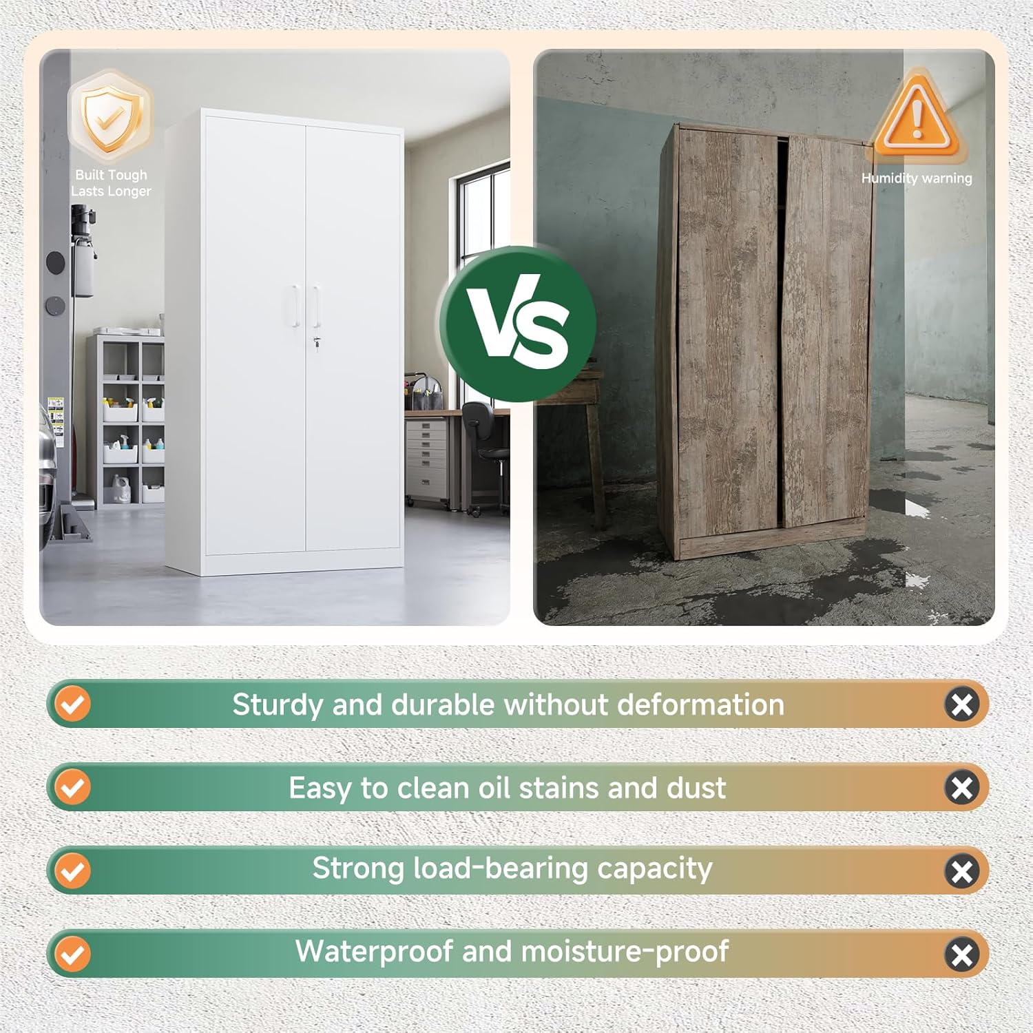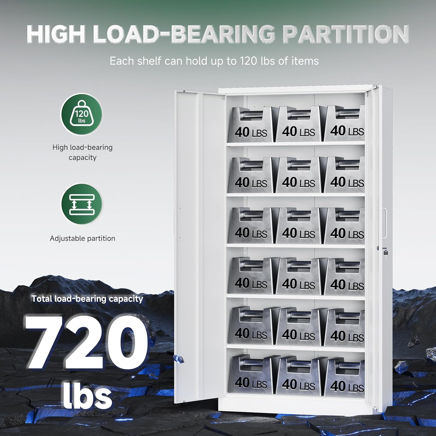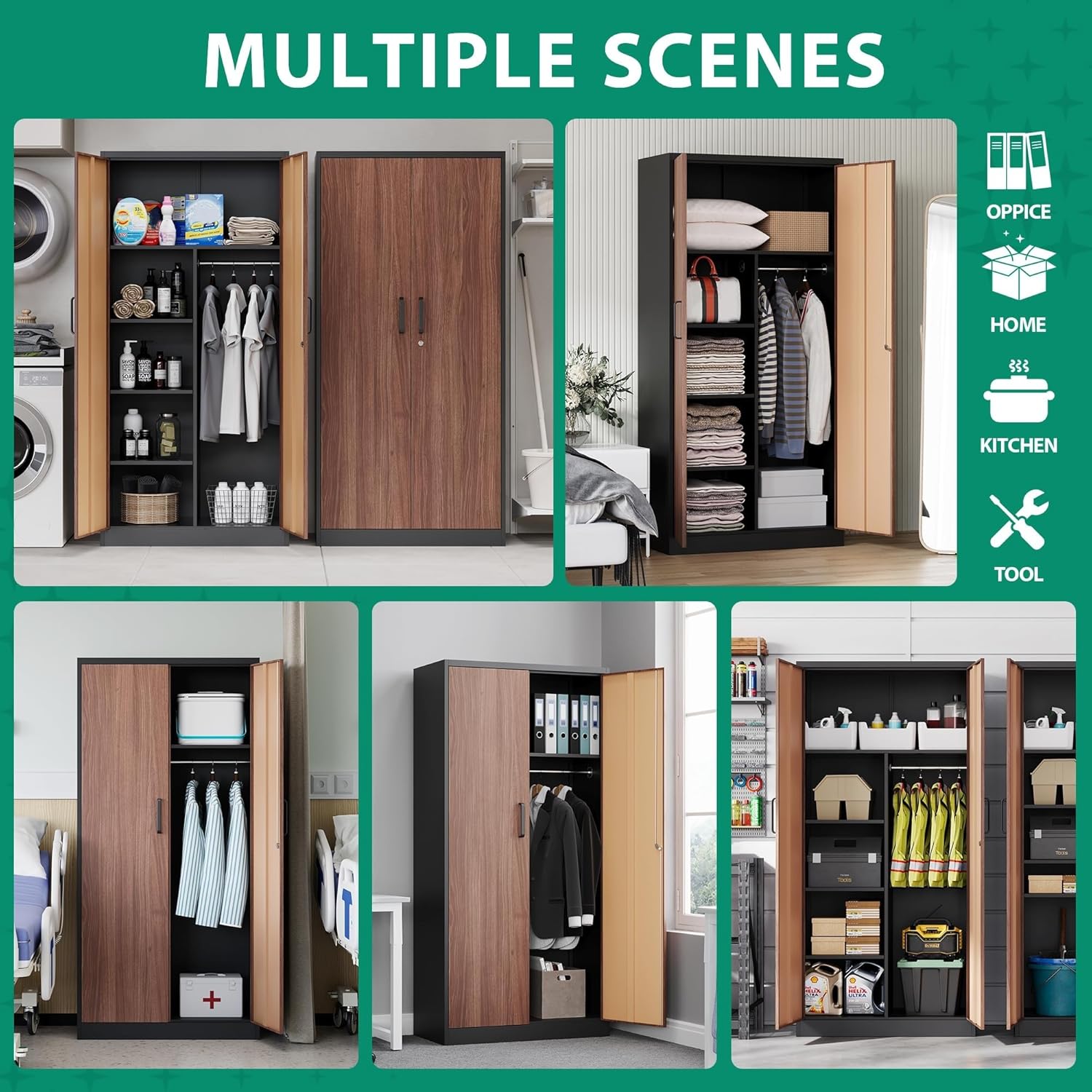 • Gran espacio de almacenamiento: armarios de acero para cochera de 72 x 36 x 18 pulgadas, cuenta con 4 estantes ajustables, pueden soportar hasta 180 libras; perfecto para su uso en hogares, oficinas, garajes, escuelas, tiendas, almacenes u otros espacios comerciales