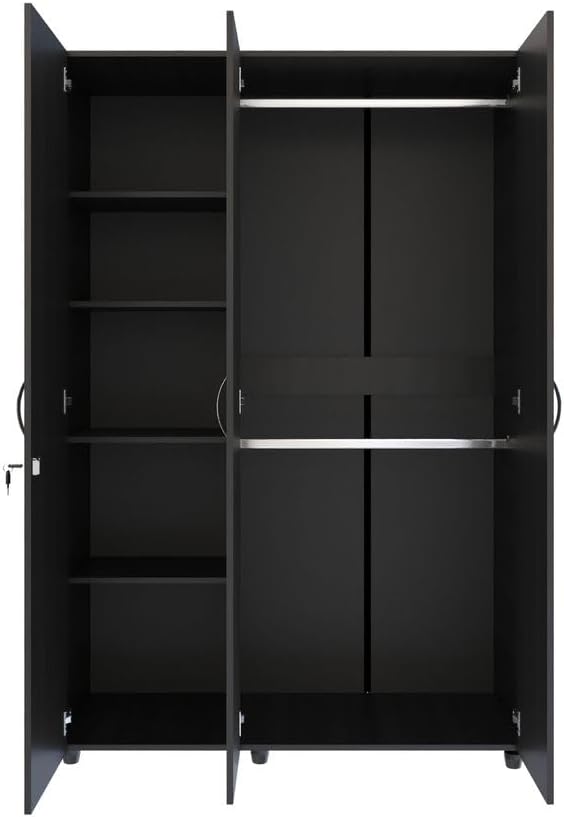 • 🚪 Amplio Espacio de Almacenamiento: Este ropero cuenta con tres puertas abatibles y un diseño interior bien distribuido que ofrece un amplio espacio de almacenamiento. Con un colgadero superior e inferior y un compartimento lateral con entrepaño, puedes organizar y guardar tu ropa de manera eficiente.