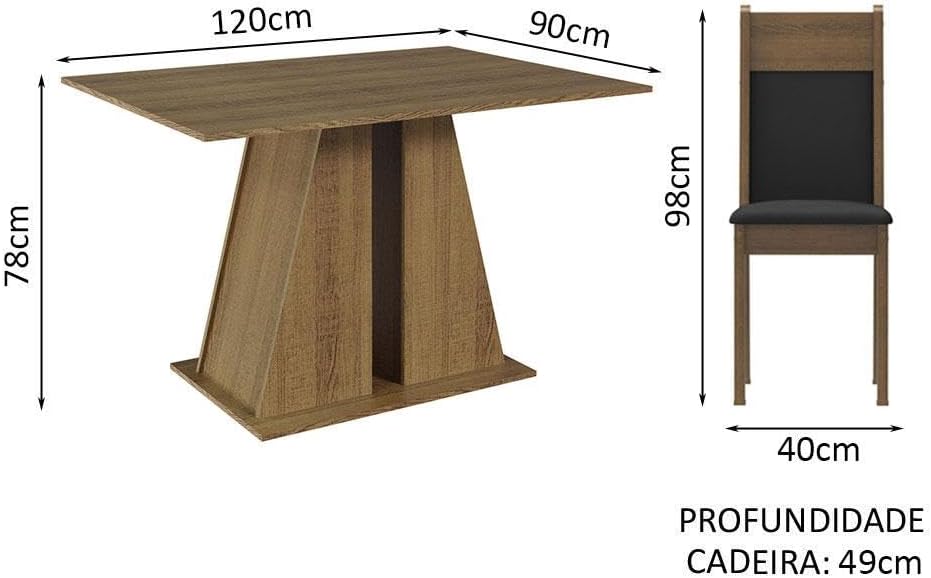 - La mesa mide 78 cm de alto, 120 cm de ancho y 90 cm de profundidad. Cada silla mide 98 cm de alto, 40 cm de ancho y 49 cm de fondo.