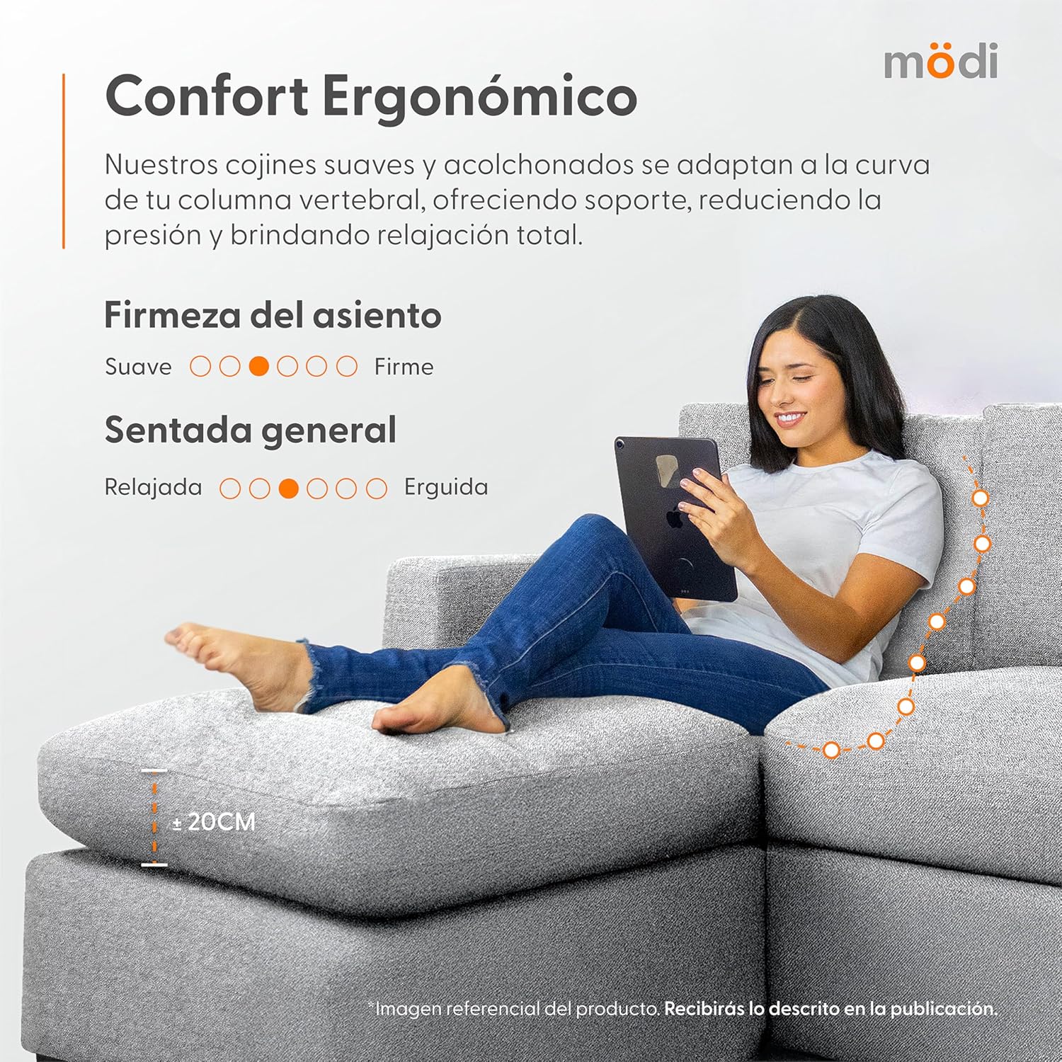 - ⭐ Eleva tu experiencia de sala con nuestra Sala Esquinera Grande con Otomano MÖDI ADAPTI, la combinación definitiva de espacio y versatilidad. Este kit premium incluye cinco Módulos C (Sillones Sin RepozaBrazos), un Módulo E (Esquinero Base), un Módulo F (Esquinero Respaldo), un Módulo D (RepozaBrazos), un Módulo B (Otomano) y un Módulo J (Pillow Pack). Entregado en diez cajas, esta configuración expansiva (272x212x87cm) es ideal para quienes buscan una sala que combine máxima capacidad de asiento con flexibilidad de uso.