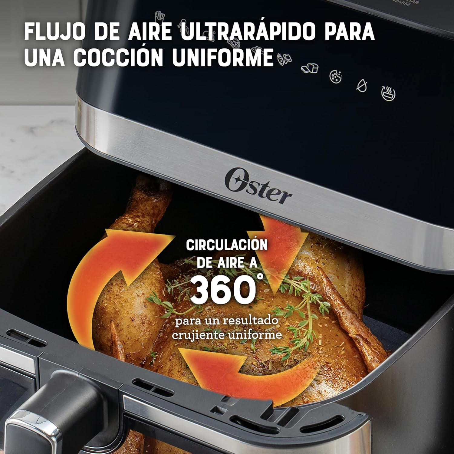 Oster® Freidora de Aire Digital XL 7.5L con Ventana y Luz Interna, Recubrimiento DiamondForce, 10 Programas Automáticos, Modelo CKSTAF75WDSSDF