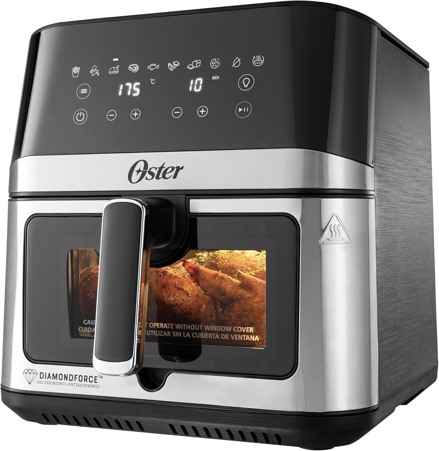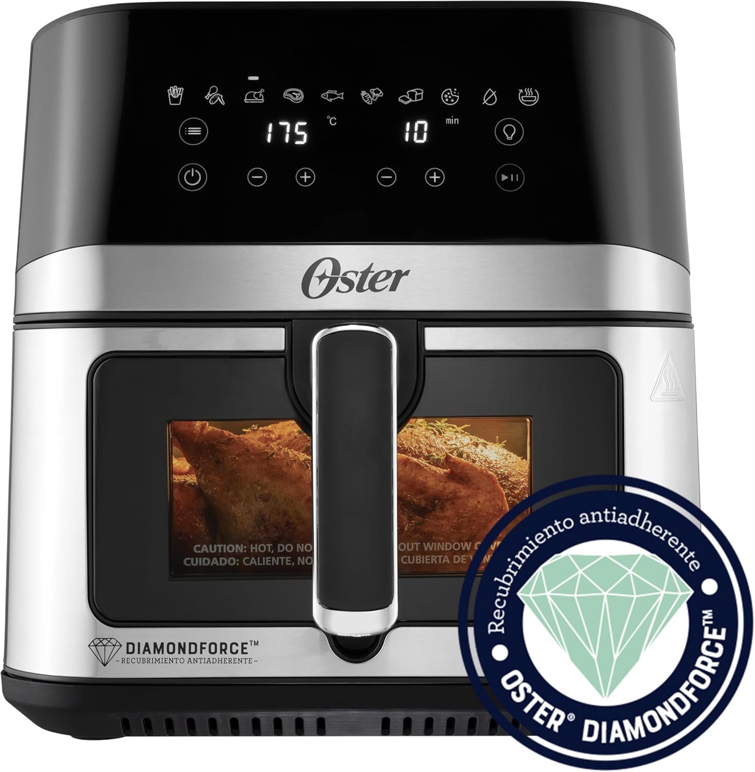 Oster Freidora de Aire Digital, Recubrimiento DiamondForce, con Ventana y Luz Interna, 7.5L de Capacidad, 10 Programas Automáticos, CKSTAF75WDSSDF