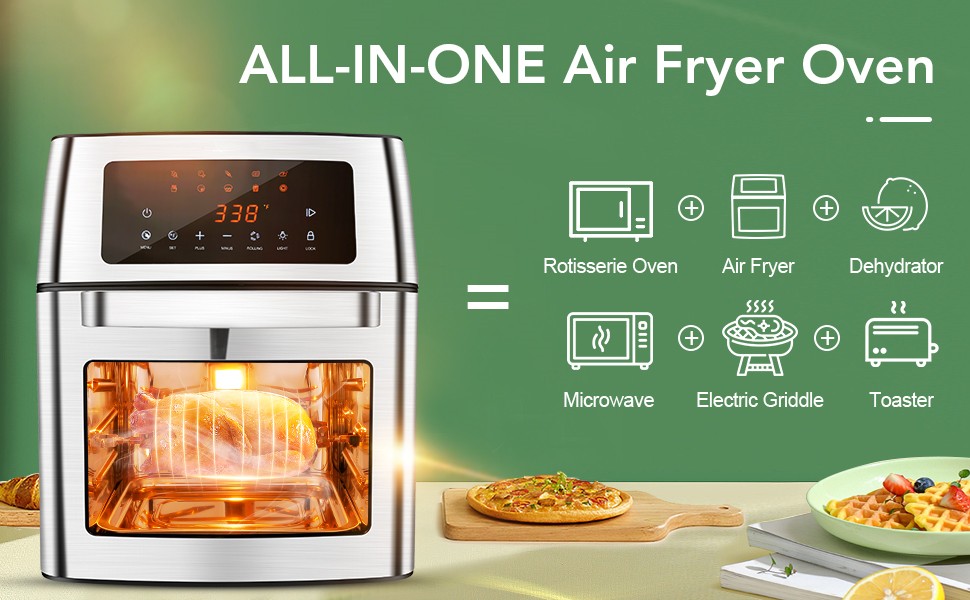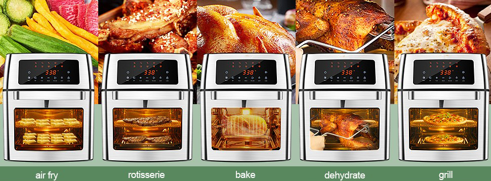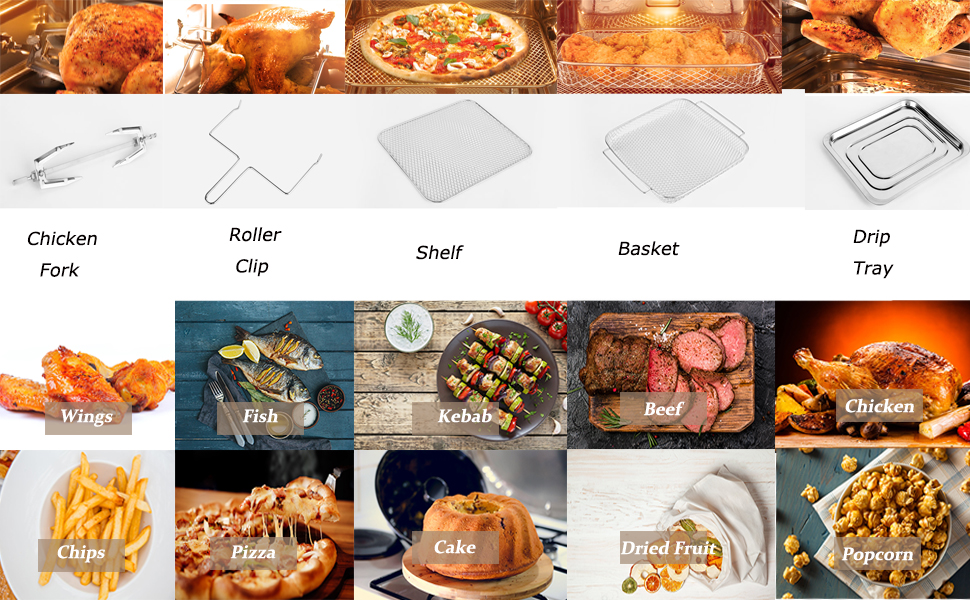 • 🍳【Easy to Clean & Customer Service】- Our air fryer oven includes cooking accessories for free: oil tray, wire rack, chicken fork, fry net basket, and baking tray. All accessories are removable for easy cleaning, nonstick, dishwasher safe. In addition, we provide you 24-hour after-sale service, please feel free to contact us when necessary.