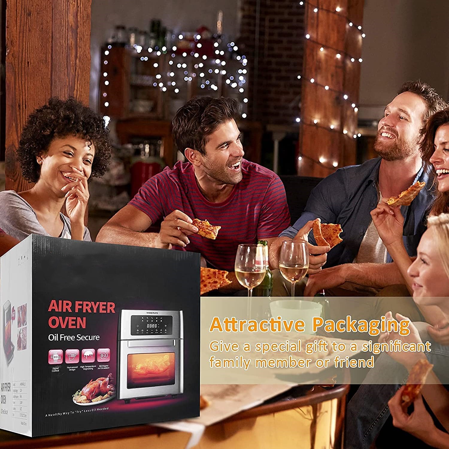 ° hot air circulation. which can reduce 85% less oil and fat than traditional oil deep frying and make the cooking faster, evenly, and cut your cooking time.