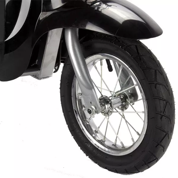 • Features a kid-sized frame making it the perfect introduction to electric-powered fun; 12-inch pneumatic tires and a rear hand-operated brake for a smooth ride; No helmet included
