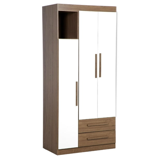 Ropero Closet Moderno 3 Puertas Blanco y Cafe Recamara Hogar