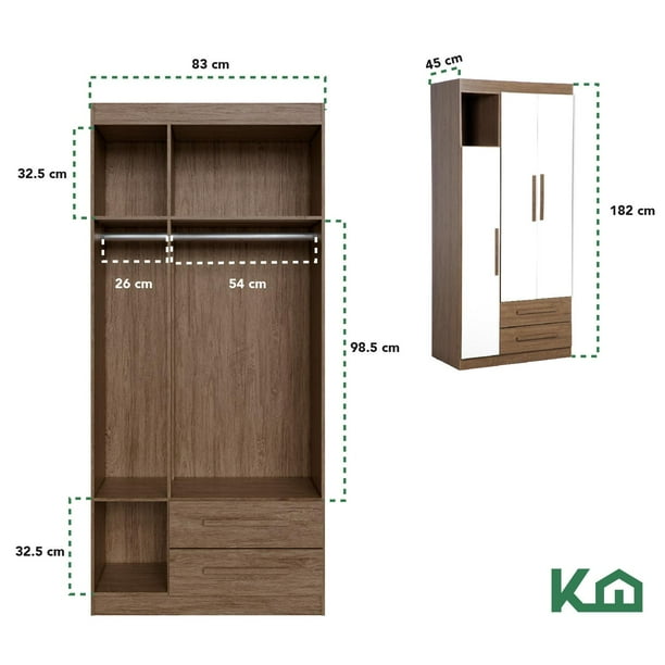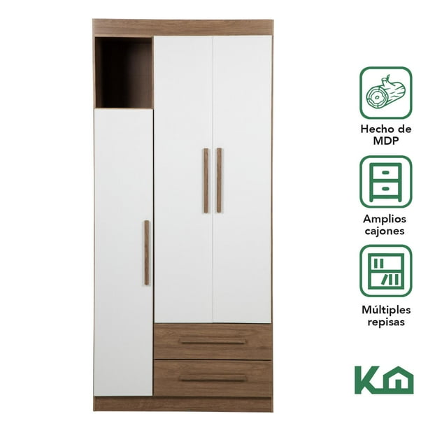 Ropero Closet Moderno 3 Puertas Blanco y Cafe Recamara Hogar KingsHouse 300647