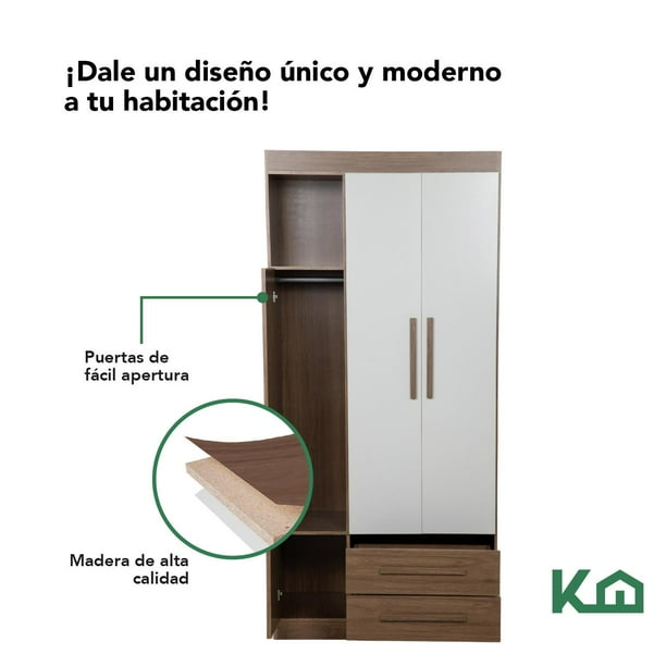 Mantén tu habitación organizada con el ropero clóset KingsHouse; este mueble de madera MDP melaminada y brillante, le dará un diseño único y moderno a tu hogar.