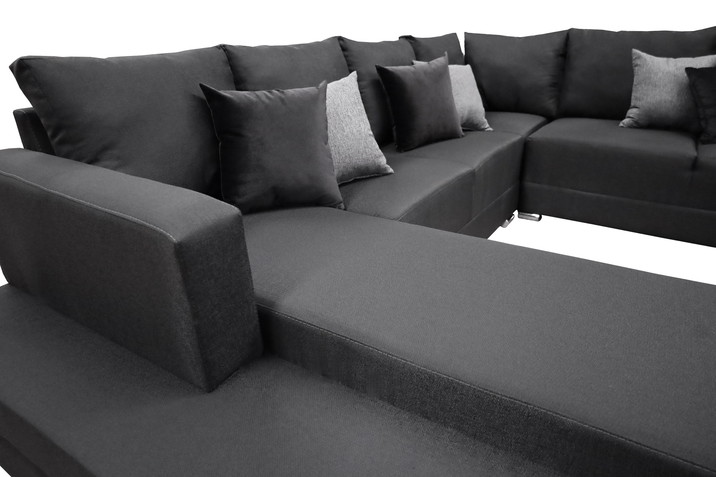 Hermosa sala esquinera en "U" modelo Corbel. Sin duda la mejor elección para tu total comodidad, no te quedes sin la tuya.4 salas en 1, conformada por 3 piezas las cuales les puedes dar el acomodo y utilidad que tu prefieras!Estructura elaborada con madera de pino estufada, totalmente resistente para una larga vida.Tapizada en fina tela lino en color gris oxford. Acojinamiento con hule espuma de alta densidad y delcron greña en cojines, para mayor confort y durabilidad. Todos los cojines incluidos.Medidas: Largo derecho 255 cm, largo frente 315 cm, largo izquierdo 200 cm, Profundidad 90 cm, Alto 85 cm