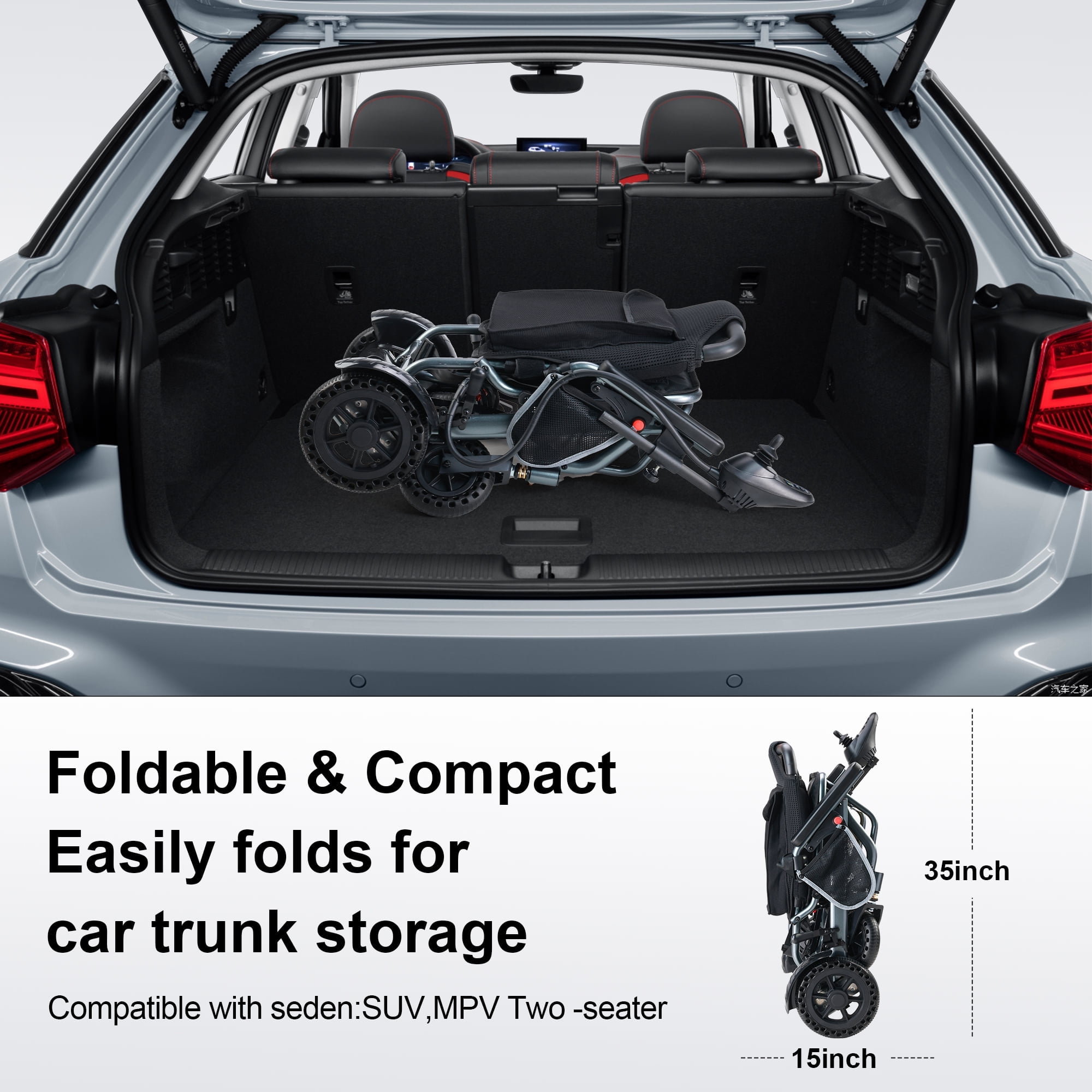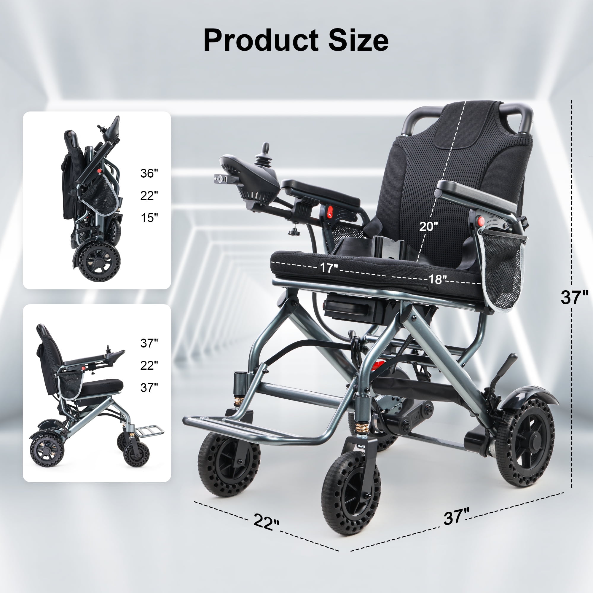 • Cómodo y apto para viajes: plegable en segundos, adecuado para maleteros de automóviles, aviones, trenes y cruceros. Cambie entre el modo eléctrico y manual con ruedas de remolque y manténgase cómodo con un cojín engrosado de malla transpirable y un respaldo acolchado.