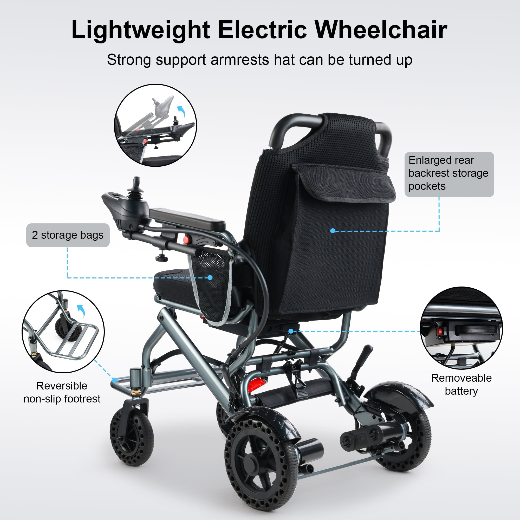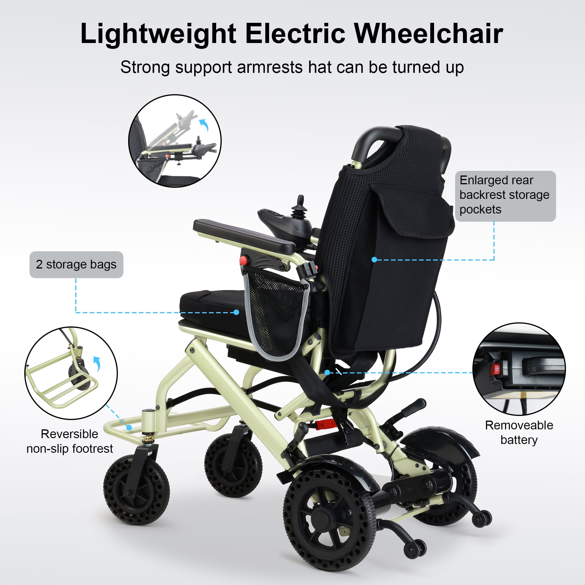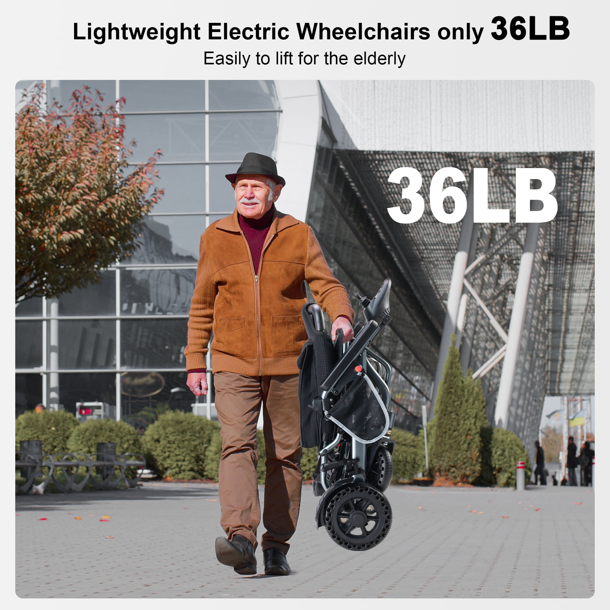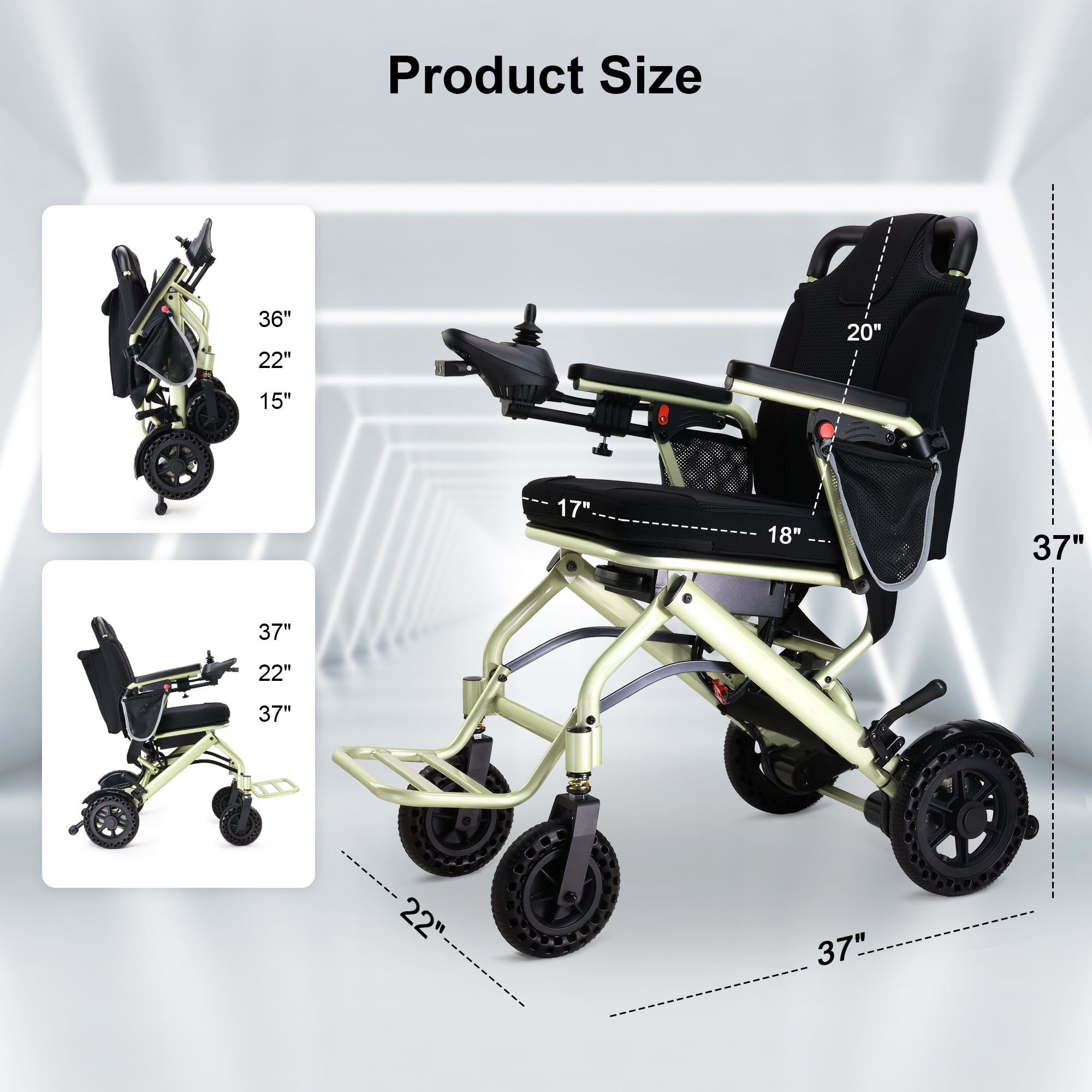 Silla de ruedas eléctrica plegable liviana Nguyen Quach de 36 lb para adultos, silla de ruedas compacta de alcance de 10 millas