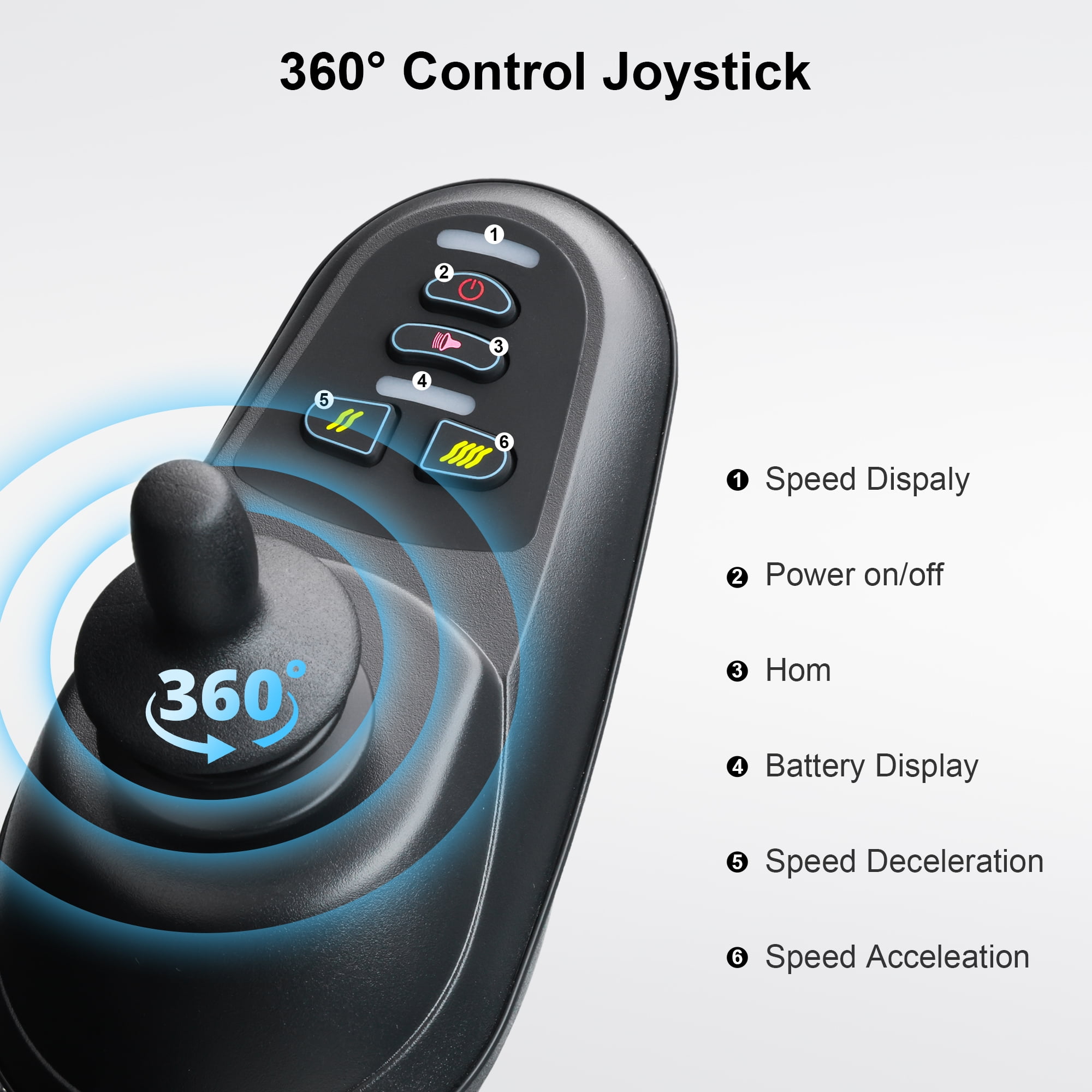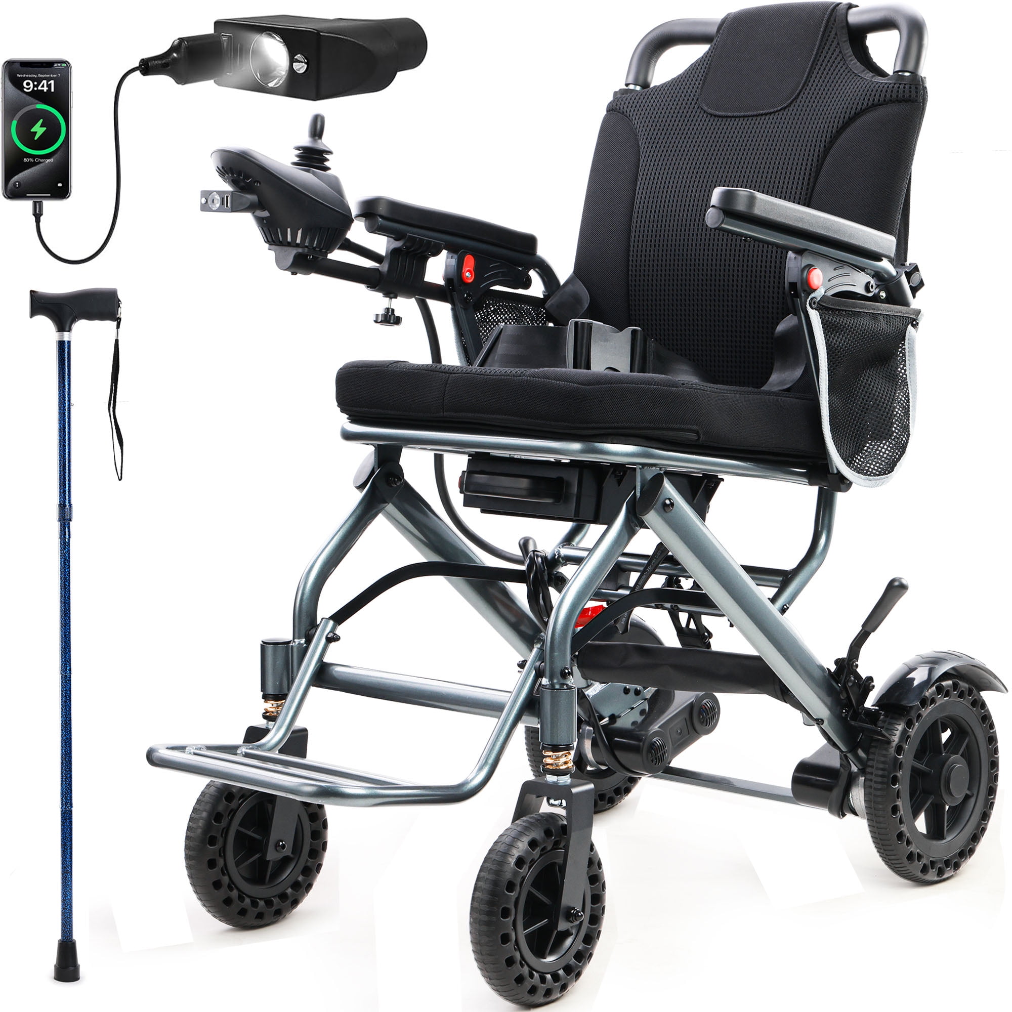 • Accesorios mejorados: 1 silla de ruedas eléctrica con cojín grueso, 1 bastón plegable, 1 candado de combinación de 4 dígitos, 1 luz LED, 1 bolsa de almacenamiento trasera, 2 bolsas de almacenamiento de malla, 1 manual de usuario, 1 kit de herramientas, 1 cargador, 1 cable USB