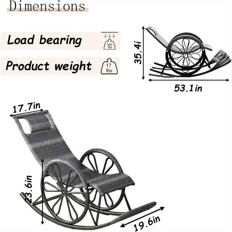 Silla mecedora para exteriores, sillas mecedoras para patio con soporte de 330 libras, mecedora suave para porche para terraza, jardín, patio