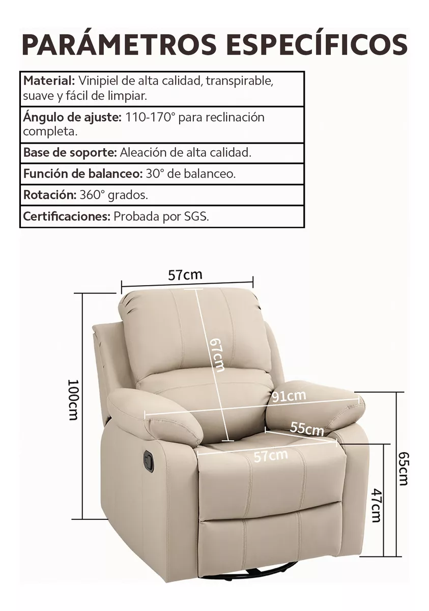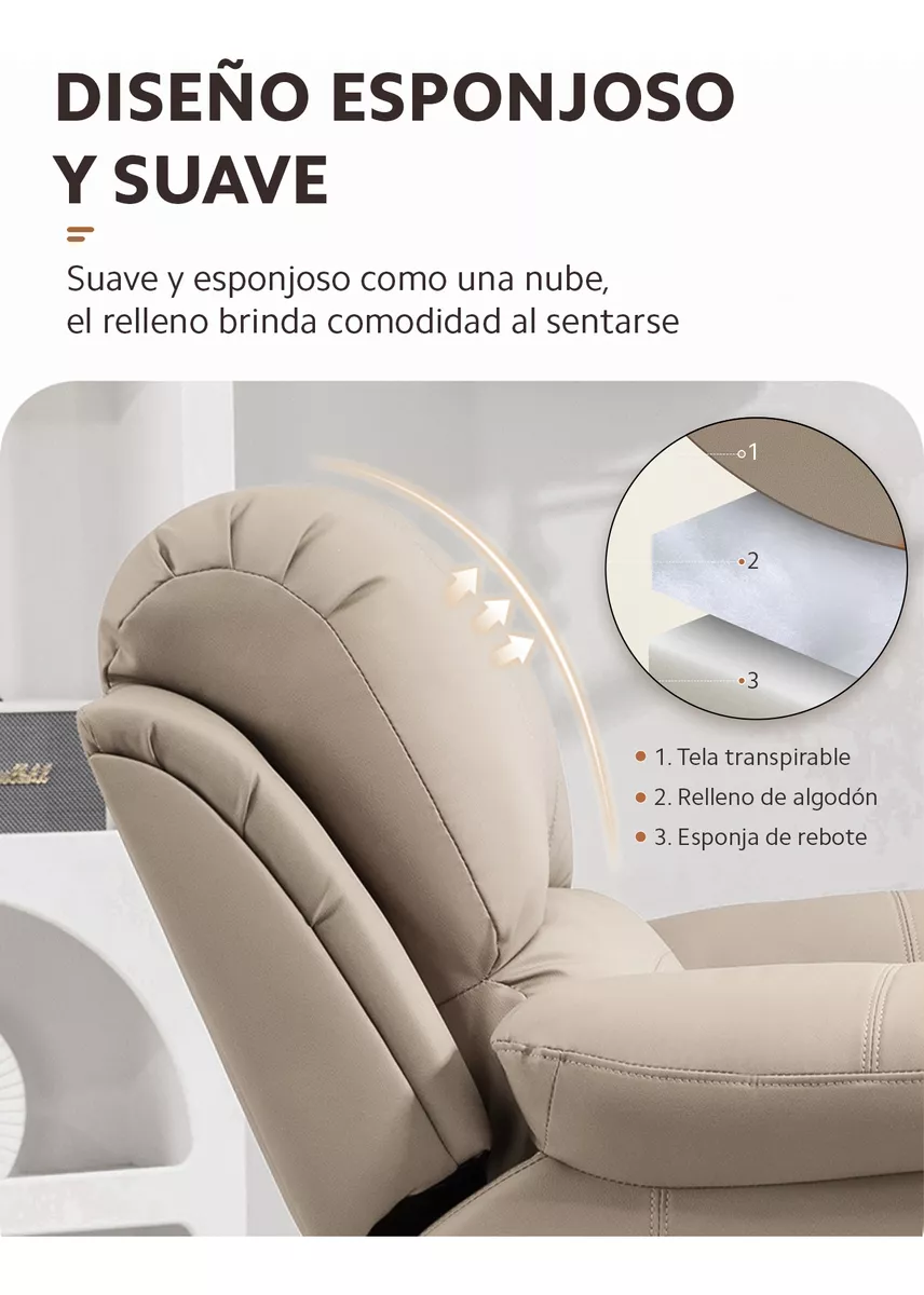 Dale un toque sofisticado a tu hogar con nuestro sillón reclinable de cuero PU. Este material innovador no solo es elegante, sino también resistente al agua y a los arañazos, facilitando su mantenimiento. Su diseño moderno y sencillo se integra perfectamente con cualquier decoración, creando un ambiente impecable en tu sala de estar.