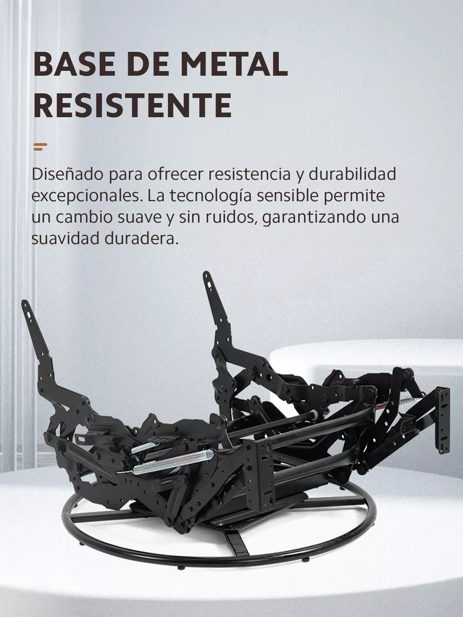 ¡Nunca fue tan fácil montar tu sillón reclinable! En solo 5 minutos podrás tenerlo listo para usar. Solo necesitas alinear las ranuras metálicas del respaldo con el asiento y, ¡listo! Comienza a disfrutar de tu nuevo sillón giratorio y balanceador en cuestión de minutos.