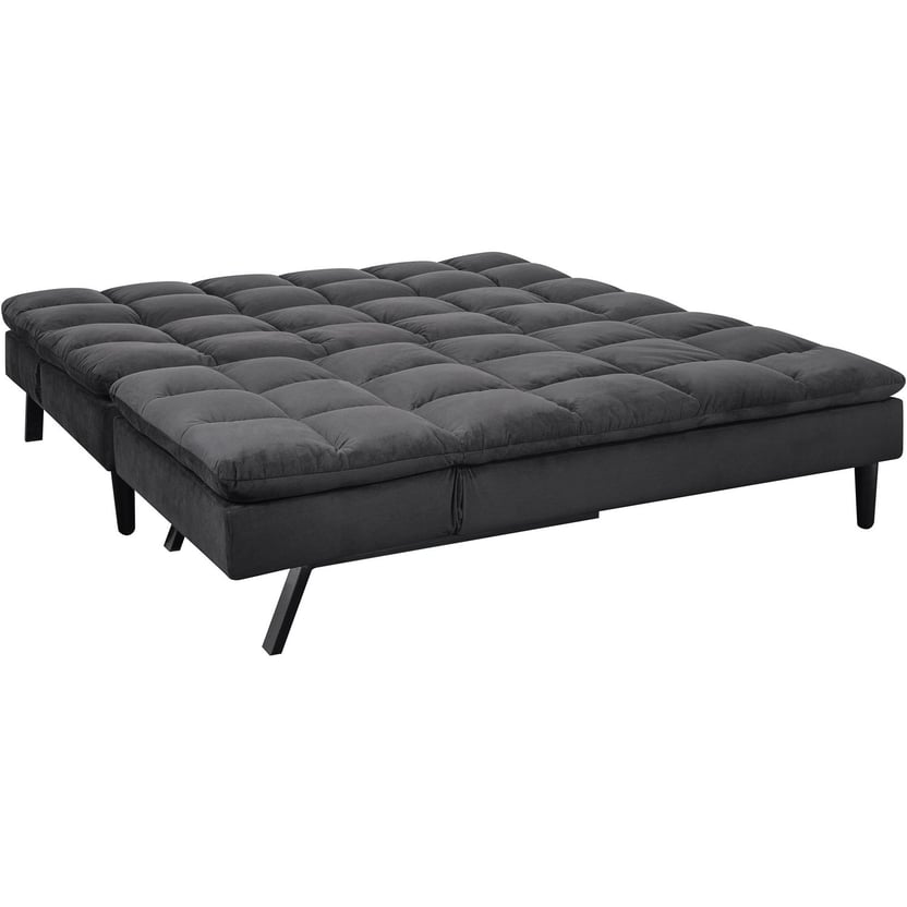 Lo más destacable de este futón de 3 cuerpos es sin duda que se puede seccionar, lo cual entrega la posibilidad de ubicarlo de distintas maneras en el espacio. Pero, también será muy útil si necesitas una cama extra, ya que si lo estiras completamente puede llegar a medir 263 cm de largo, 164 de ancho y 48 de alto. Otra de las características del producto es que está tapizado con microfibra negra y que sus patas son madera, ambos materiales que aportan a su belleza y distinción.
