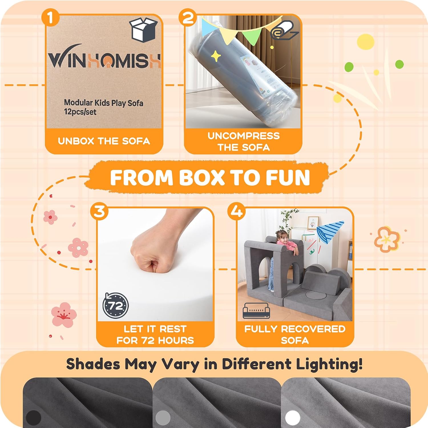 - Diseño modular de alta calidad: el sofá modular para niños Winhomish de 12 piezas ofrece una solución lujosa y personalizable para el tiempo de juego y relajación de tu hijo. Con su construcción de espuma suave y funda extraíble y lavable, este sofá para niños es perfecto para crear un espacio seguro y cómodo en cualquier habitación