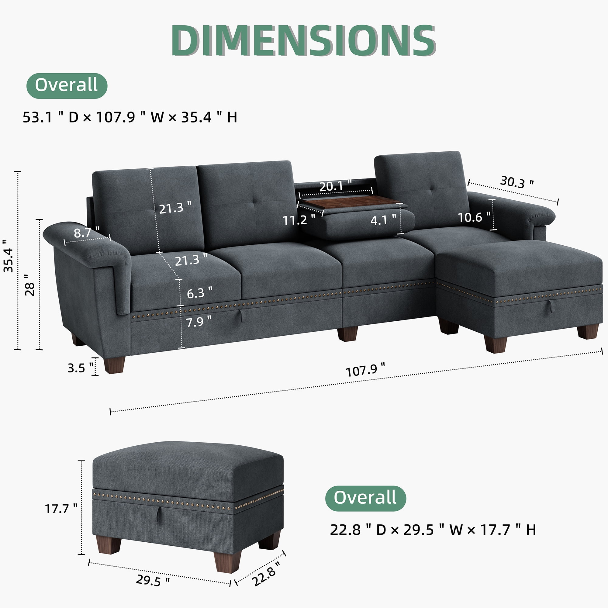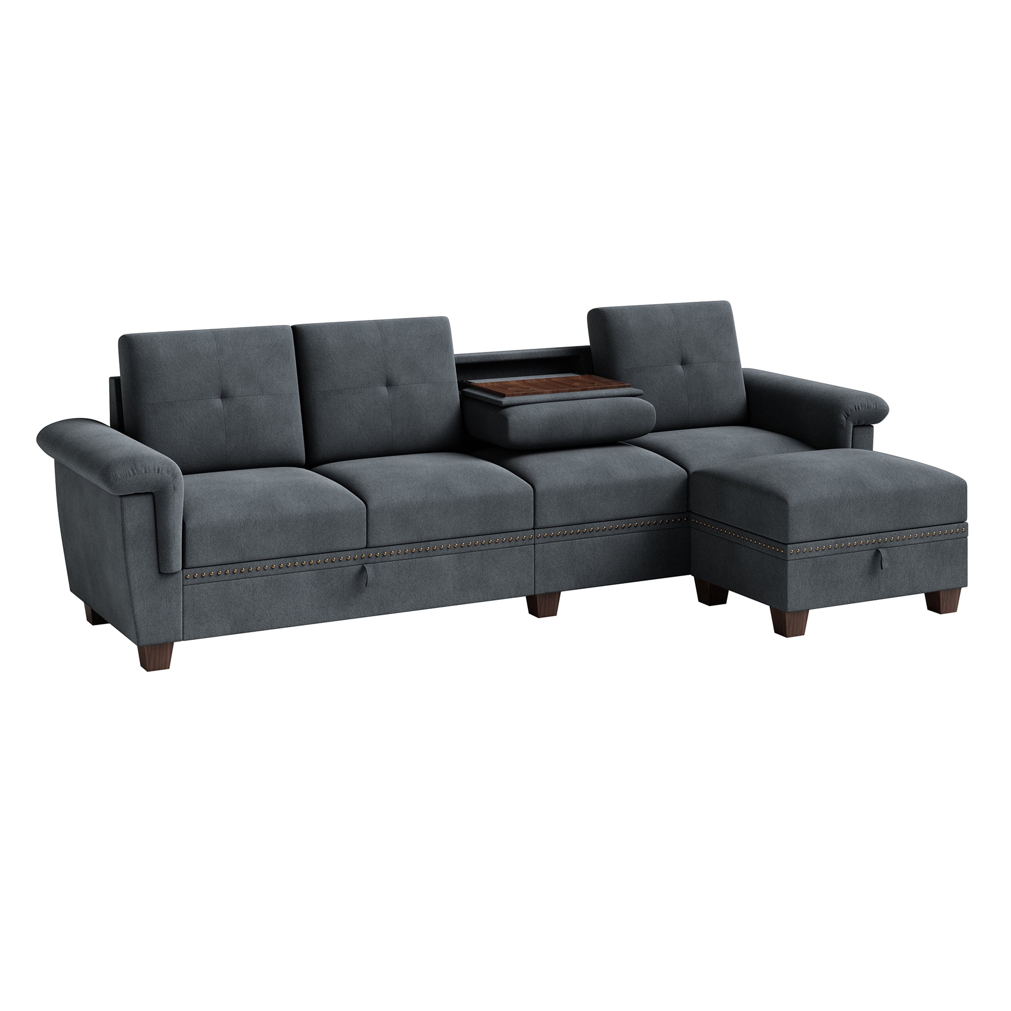 【Espacio de almacenamiento adicional y portavasos】El respaldo del sofá cuenta con un portavasos abatible para colocar bebidas y vasos. Además, cuenta con un amplio espacio de almacenamiento bajo los cojines, donde puede colocar mantas, juguetes, revistas, mandos a distancia, almohadas, etc., para mayor espacio en su habitación.