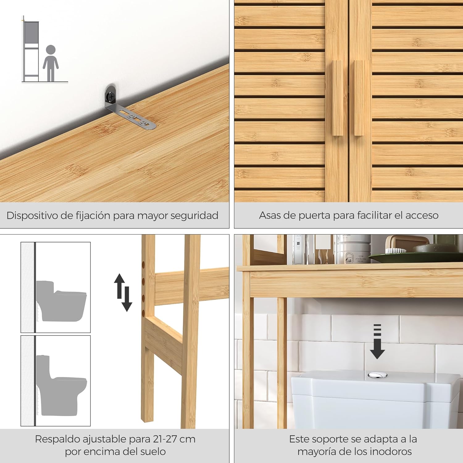 Ajústalo según tus necesidades: Con agujeros adicionales, el estante interior es ajustable en 5 posiciones diferentes, lo que le permite almacenar artículos grandes, pequeños y cualquier cosa intermedia. Además, la barra inferior de este soporte también se puede ajustar para que pueda colocarlo a una distancia del suelo de 21-27 cm para que se adapte a la tubería de su inodoro.