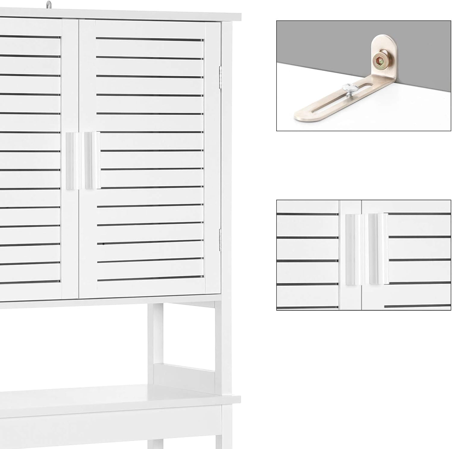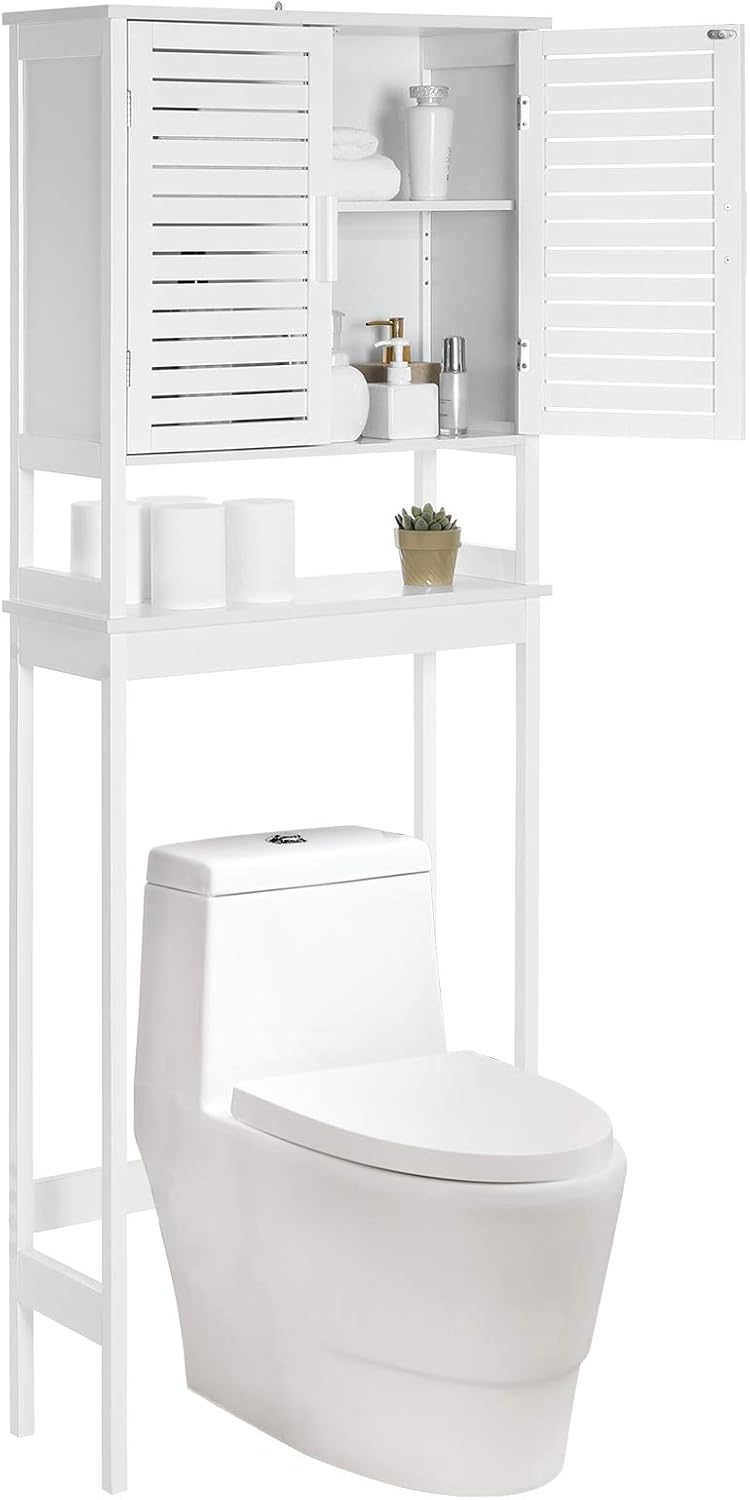 Ponga cada centímetro a trabajar: No hay necesidad de sacrificar el almacenamiento solo porque tengas un baño pequeño. Opta por este almacenaje sobre el inodoro que ahorra espacio y tendrás un armario y un estante abierto para guardar todos tus artículos de baño esenciales, desde rollos de papel hasta artículos de aseo.
