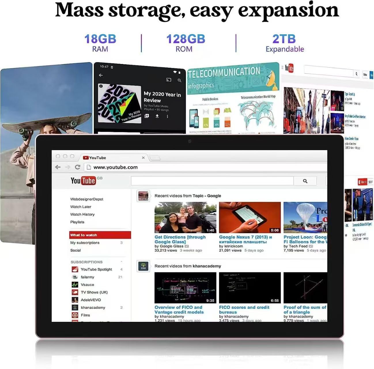 • 【18 GB de RAM+128 GB de ROM+2 TB expandible】Nuestra tablet YQ10SMAX Android 15 incorpora una potente combinación de almacenamiento de 18 GB de RAM (6 GB + 12 GB lograda a través de la tecnología de expansión) y 128 GB de ROM, viene con un procesador de nueva generación de rendimiento ultra alto y bajo consumo de energía de 2.0 GHz, logra velocidades de almacenamiento más rápidas y más estables. Además, se puede extender hasta 2 TB con una tarjeta microSD (tarjeta no incluida) para aún más almacenamiento.