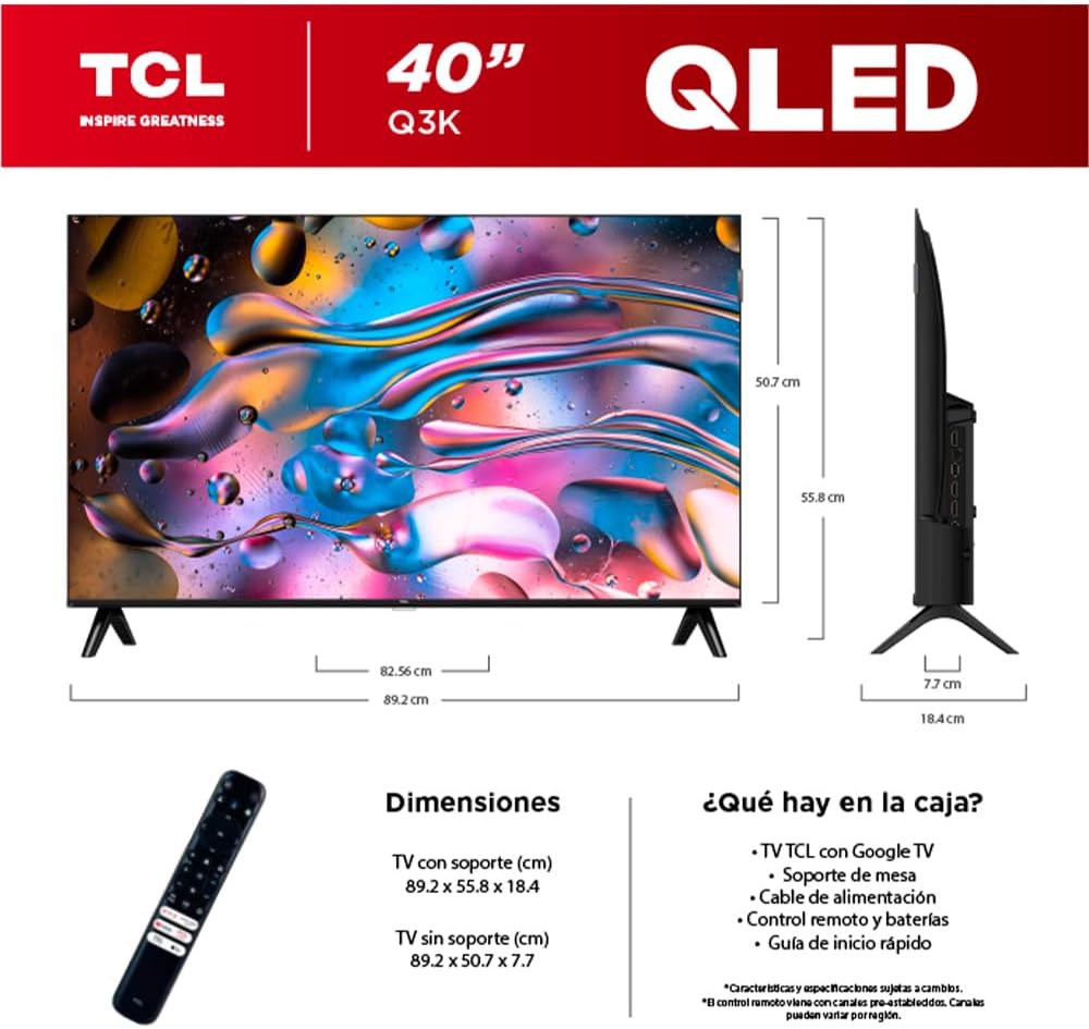 TCL Smart TV Pantalla 40" 40Q3K Android TV FHD QLED Google Cast | Alexa | 2K HDR10| NITS 300 | Panel 60 Hz | Dolby Digital +