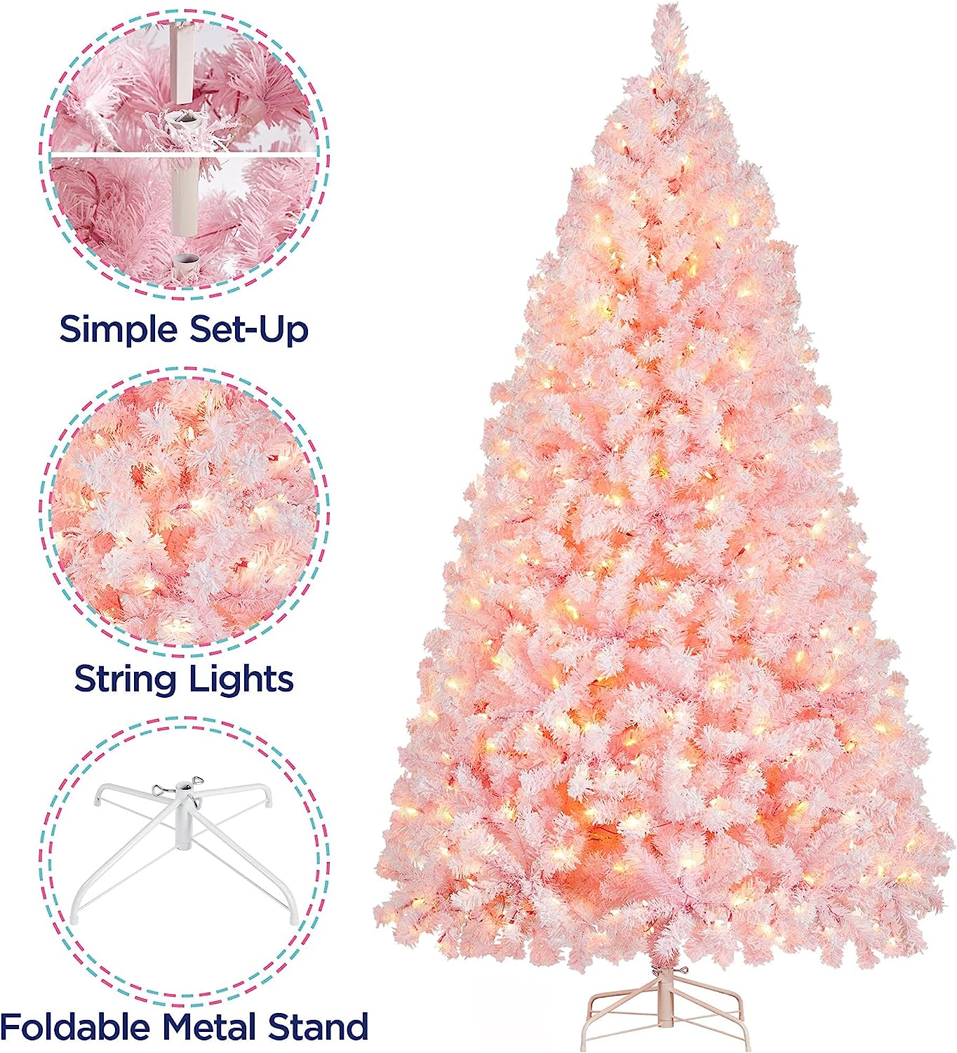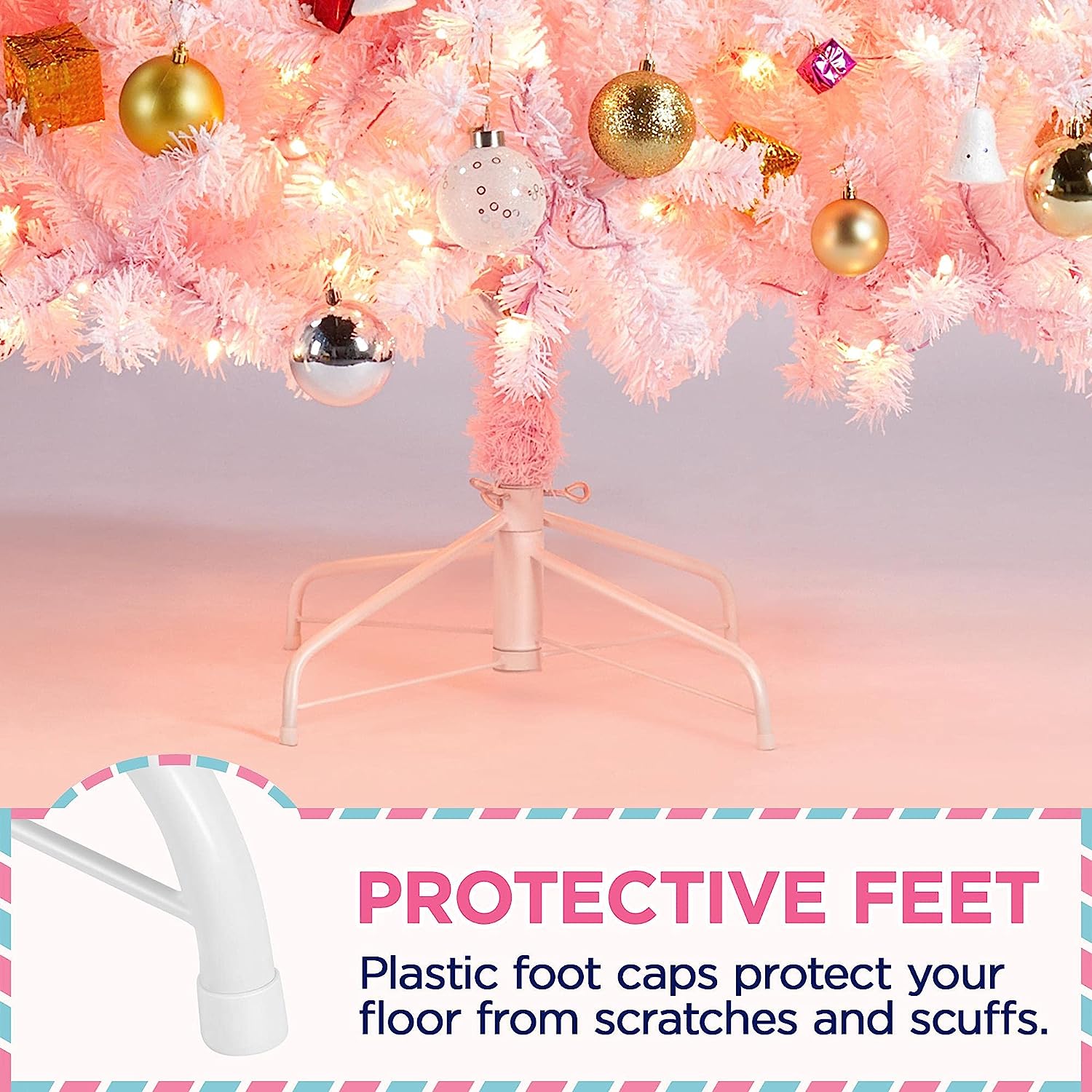 • Luces cálidas transparentes: nuestro árbol de Navidad tiene amplias luces incandescentes de color blanco cálido para que no tengas que añadir luces adicionales. Coloca este árbol artificial delante de la casa o el jardín, y deja que brille toda la noche en el festival que vale la pena celebrar.