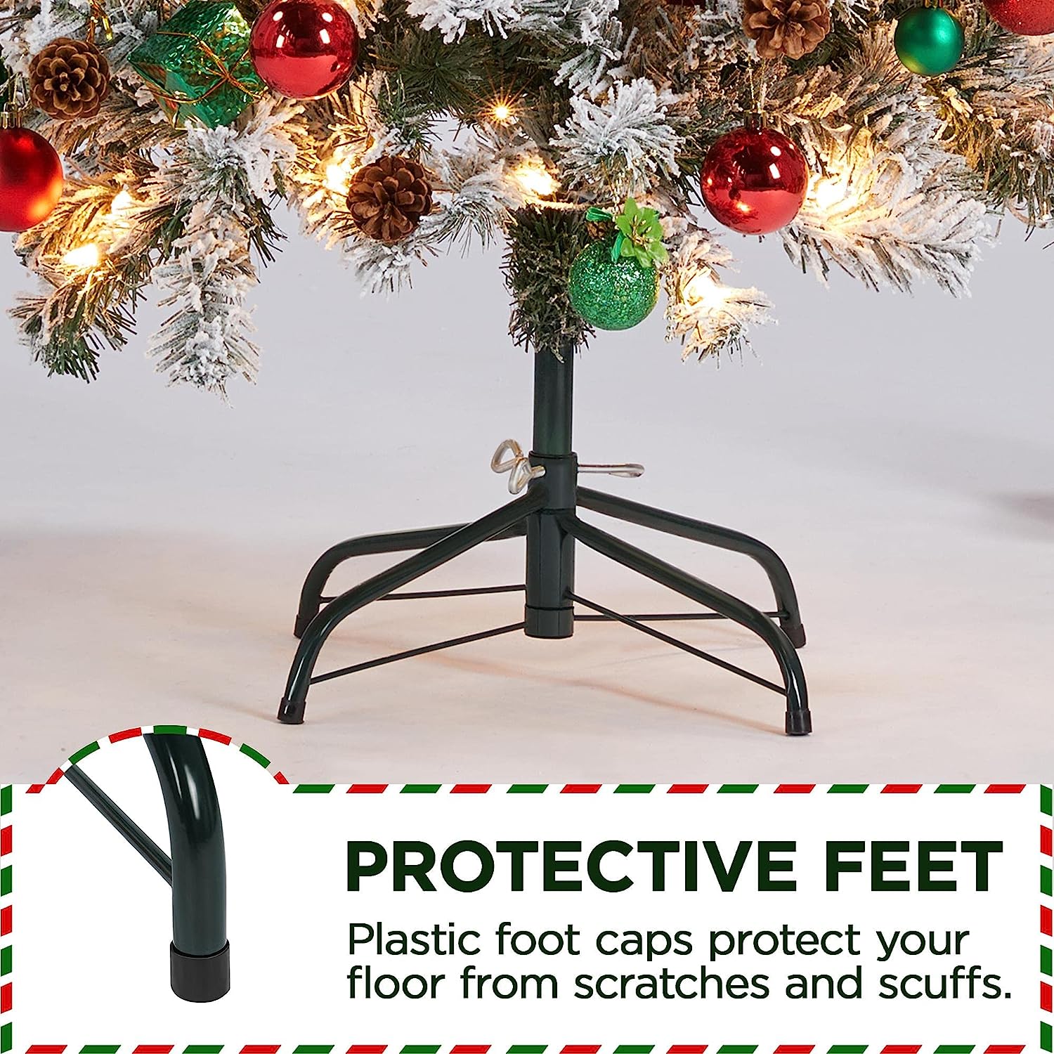 • Duradero: la "nieve" bien aterciopelada está firmemente unida a las puntas de las ramas. Está seguro de que las ramas y las puntas son resistentes al fuego y lo suficientemente fuertes como para sostener adornos adicionales. Materiales de calidad y estructura resistente que te asegurarán una larga vida útil cada invierno.