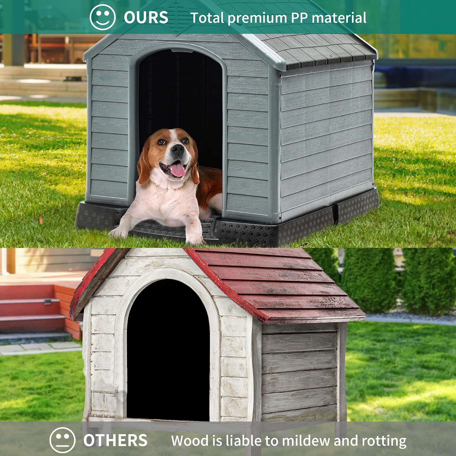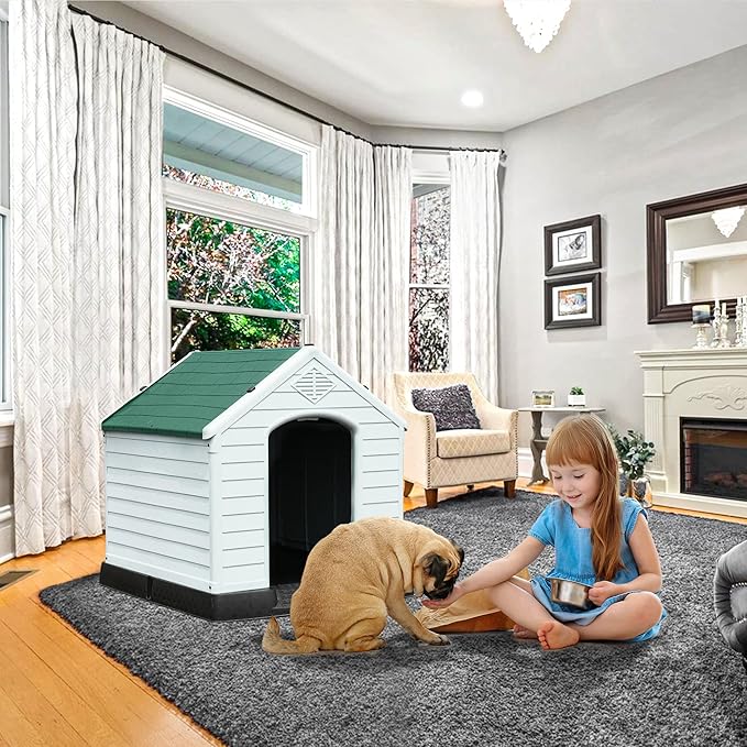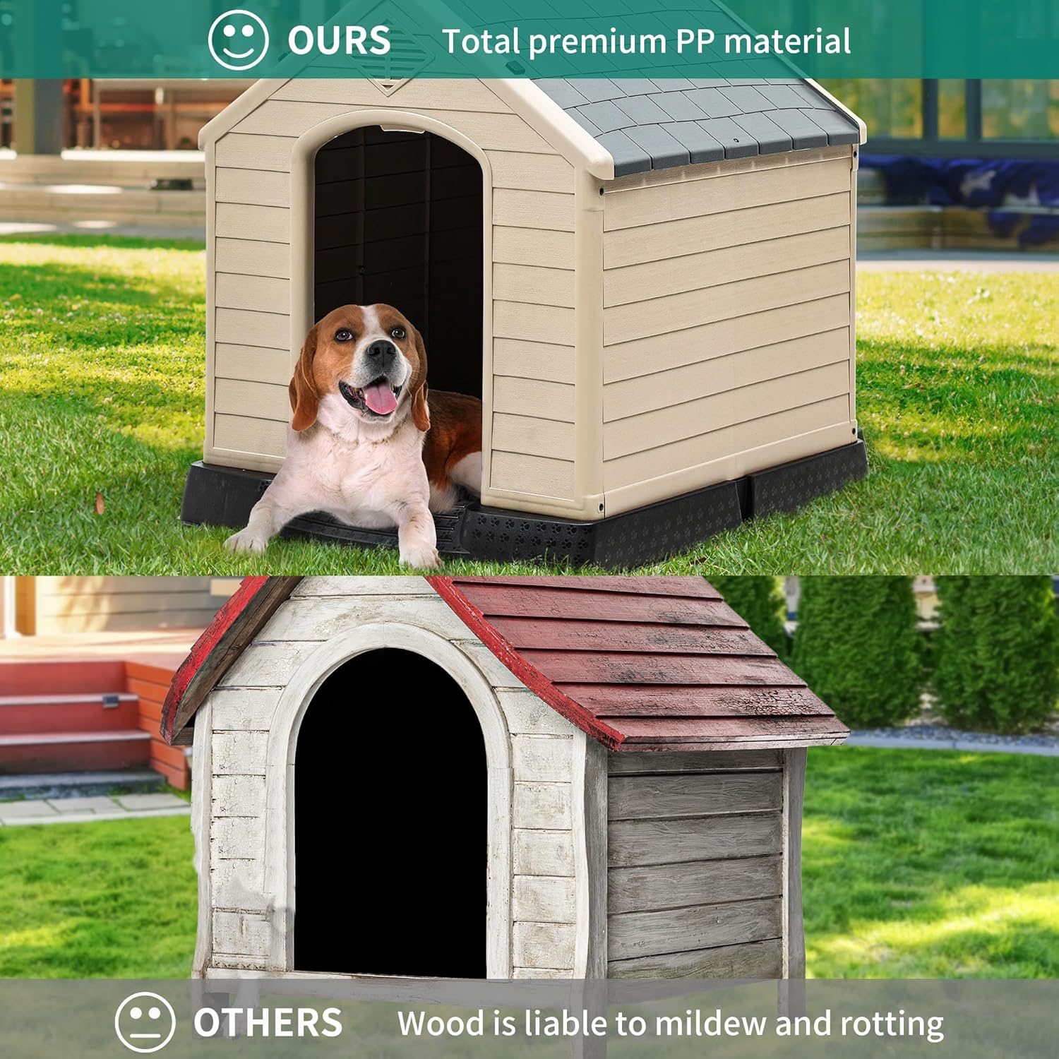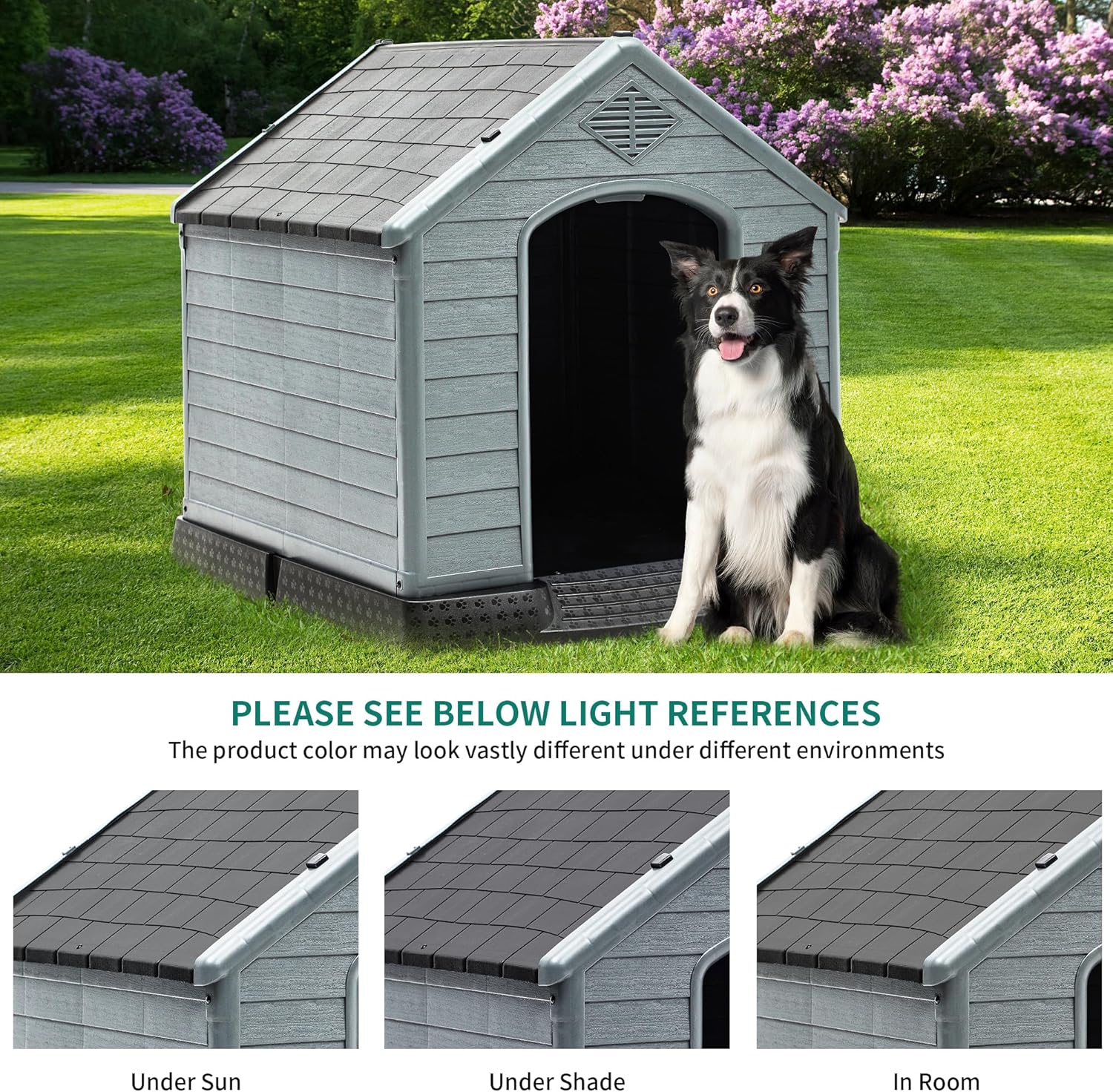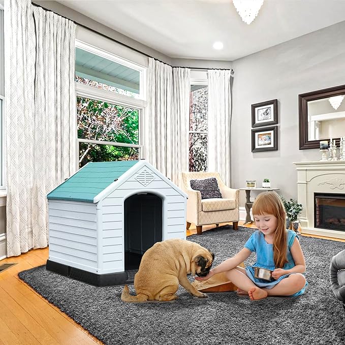 - Fuerte y duradero: nuestra casa para perros está construida con material de polipropileno grueso para resistencia a la corrosión y a la intemperie, y se sujeta con broches y tornillos para garantizar la estabilidad estructural; es lo suficientemente resistente como para que incluso un adulto pueda sentarse en el techo sin colapsarlo.