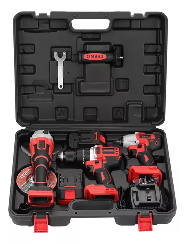 (1) Taladro Percutor, 1 Convertidor, 1 Llaves De Vaso, 1 amoladora angular sin escobillas, 1 cargador, 1 llave, 1 llave de impacto inalámbrica sin escobillas TEENO, 1 mango, 2 baterías, 2 hebilla del cinturón, 3 discos de molienda, 3 discos de patada |