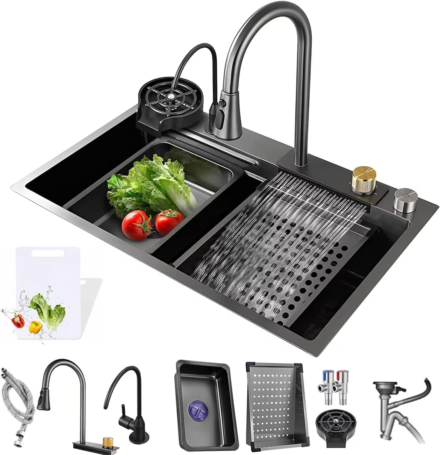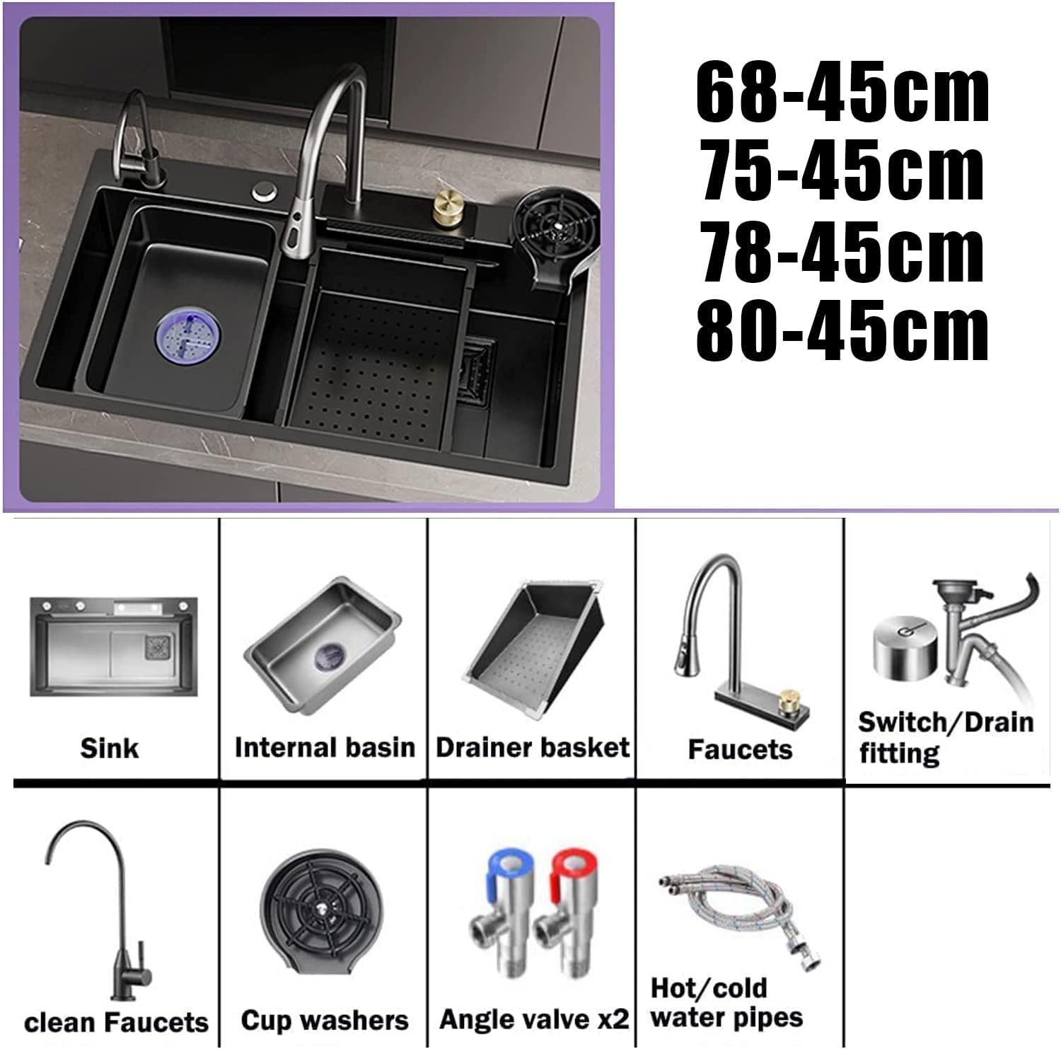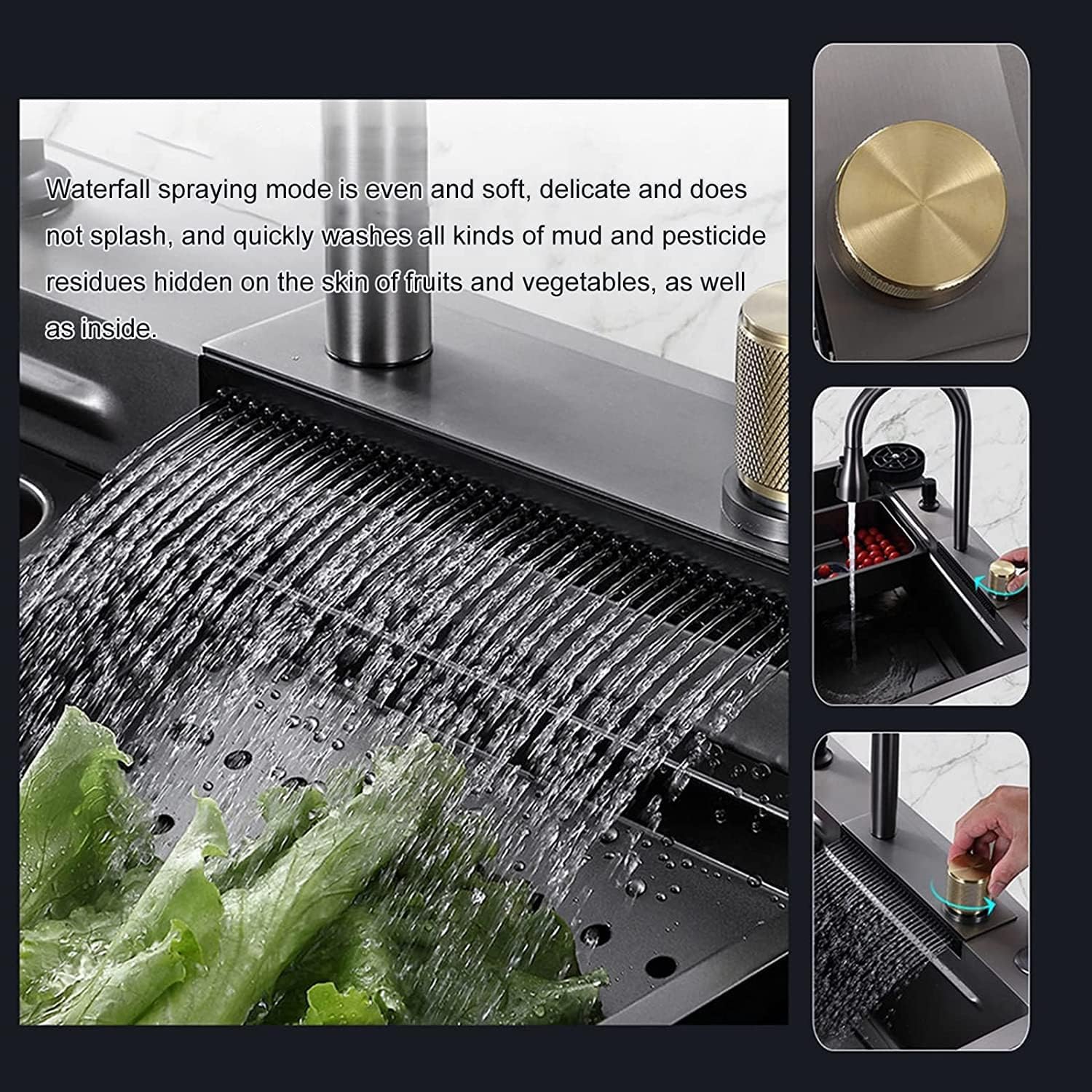 LETTURE Fregadero De Cocina, Fregadero de Cascada con 2 Pack Grifos, Fregadero de lluvia Volador, Volante Fregadero Doméstico para Cocina, Bar, Comedor, Exterior (80 * 45cm)