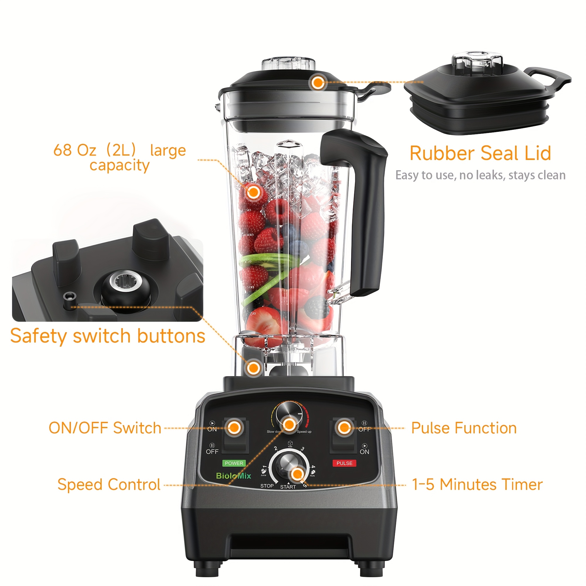 Licuadora BioloMix 2200W de alta velocidad, licuadora rompe paredes con temporizador automático, velocidad variable, jarra de 2L