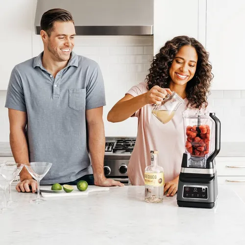 La licuadora Ninja Professional Plus DUO con Auto-iQ cuenta con un nuevo diseño moderno y un motor más potente que la licuadora profesional DUO original de Ninja.